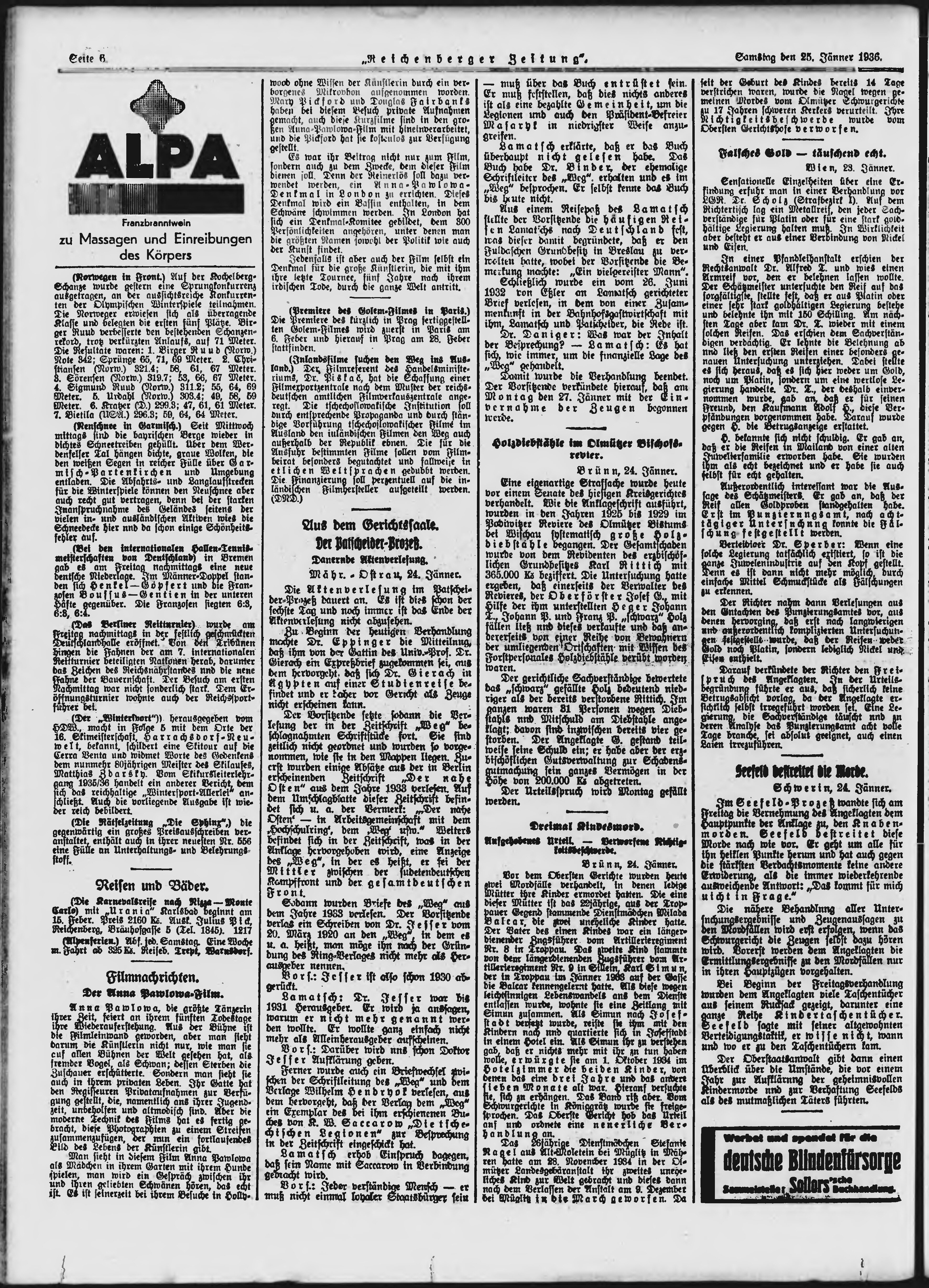 * Datum vydání výtisku: 25.1.1936 Číslo výtisku: 21 Poznámky k výtisku: ranní vydání;