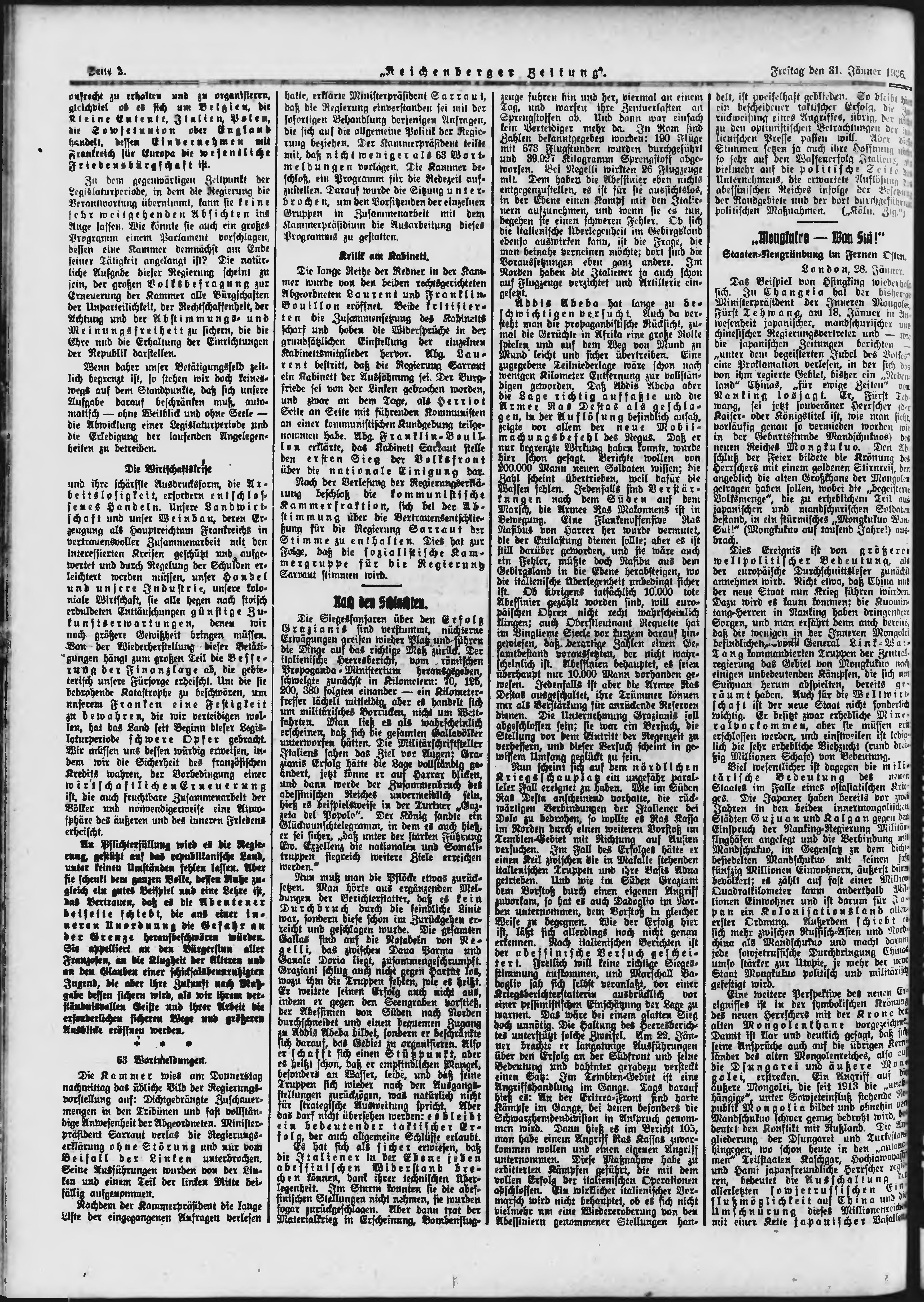 * Datum vydání výtisku: 31.1.1936 Číslo výtisku: 26 Poznámky k výtisku: ranní vydání;