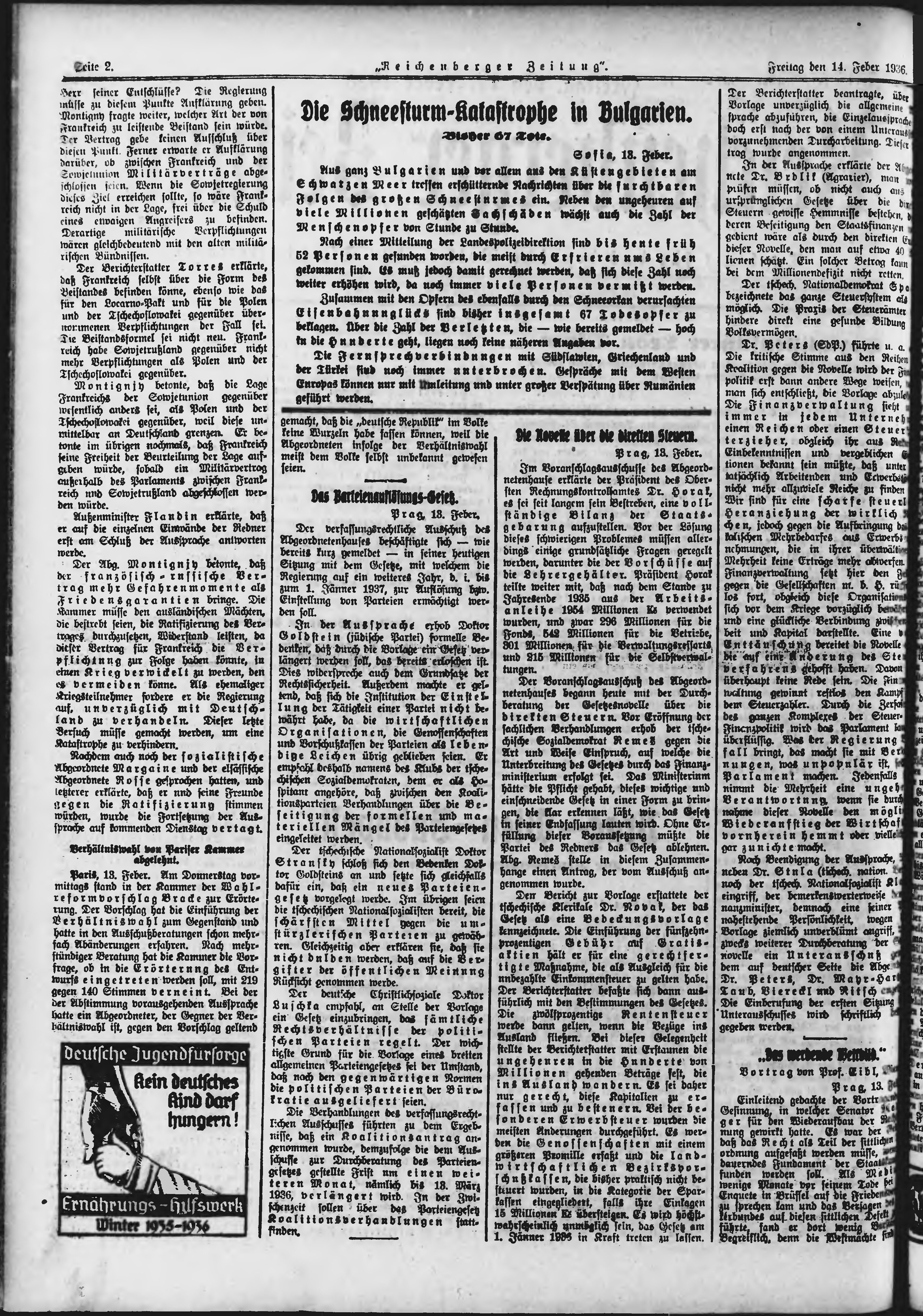 * Datum vydání výtisku: 14.2.1936 Číslo výtisku: 38 Poznámky k výtisku: ranní vydání;