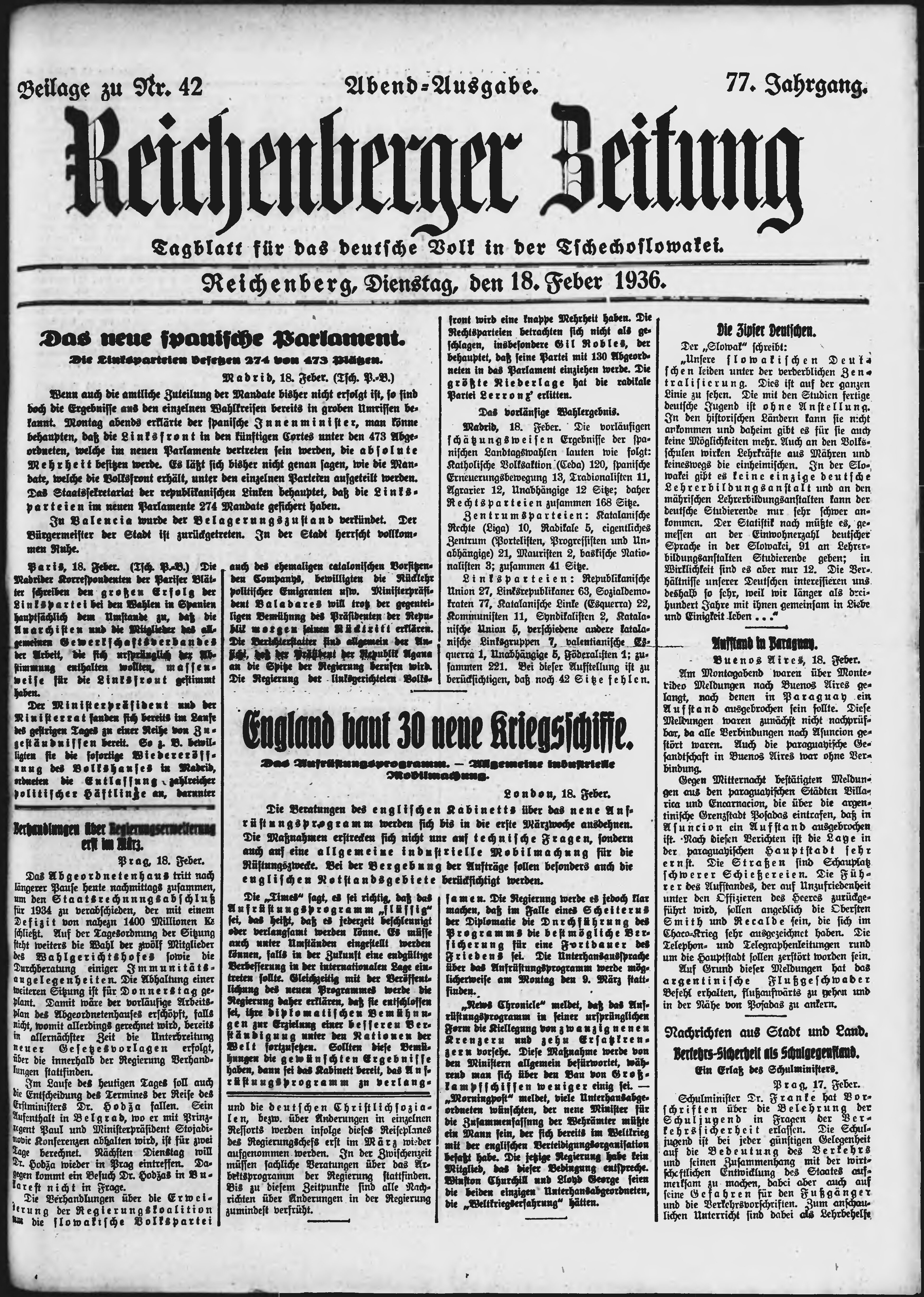 * Datum vydání výtisku: 18.2.1936 Číslo výtisku: 42 Typ výtisku: příloha Poznámky k výtisku: večerní vydání;