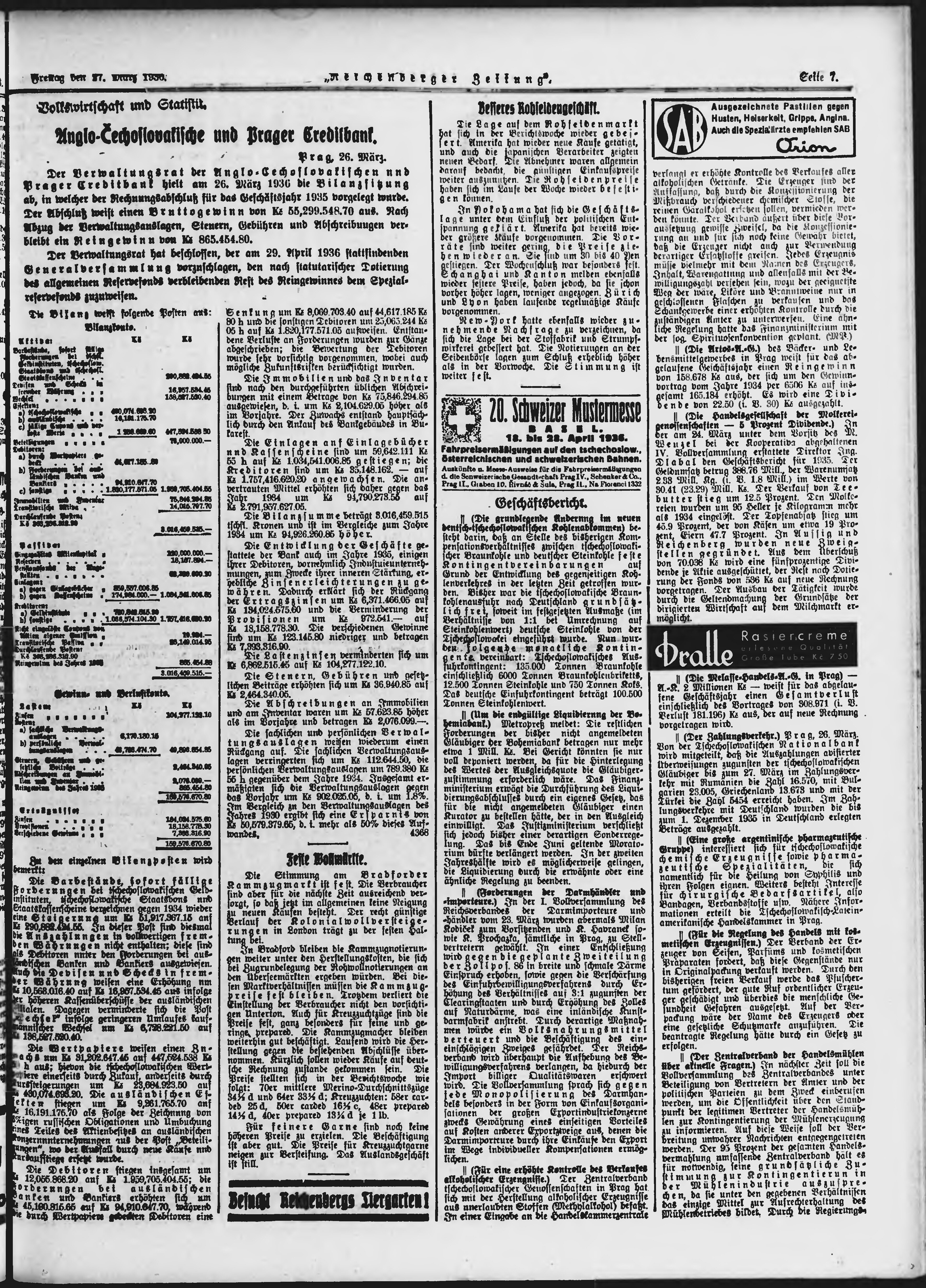 * Datum vydání výtisku: 27.3.1936 Číslo výtisku: 74 Poznámky k výtisku: ranní vydání;