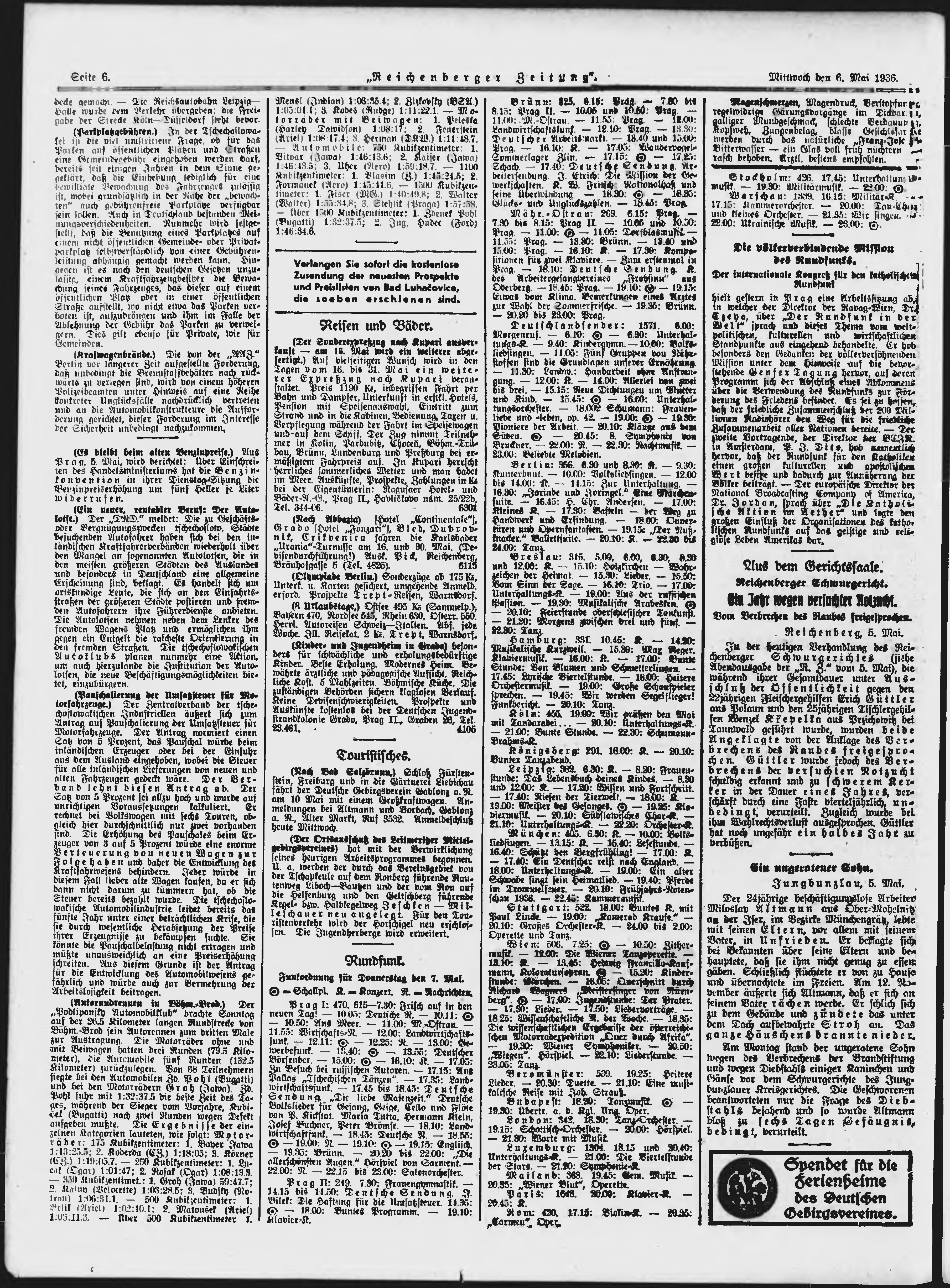 * Datum vydání výtisku: 6.5.1936 Číslo výtisku: 106 Poznámky k výtisku: ranní vydání;
