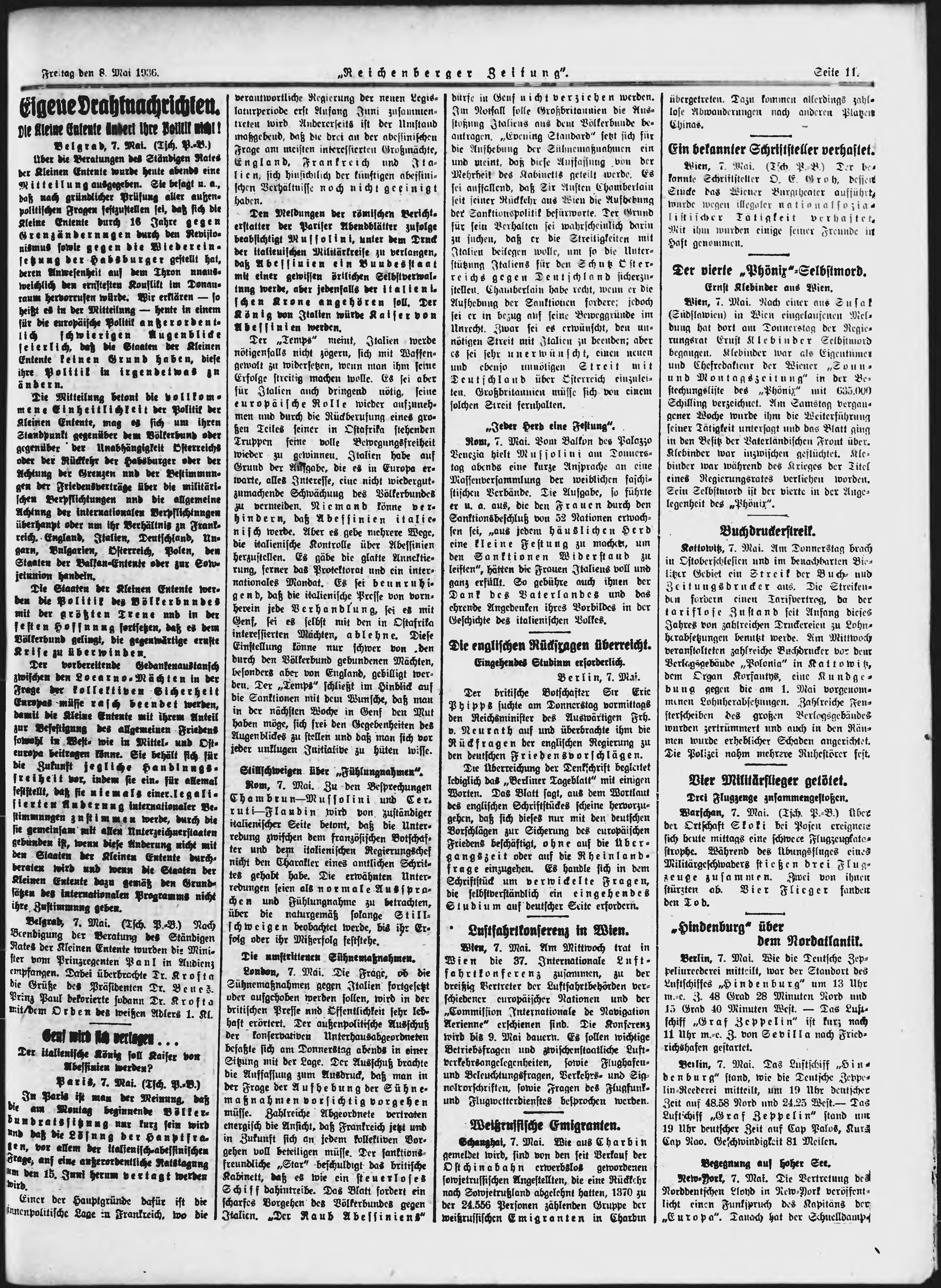 * Datum vydání výtisku: 8.5.1936 Číslo výtisku: 108 Poznámky k výtisku: ranní vydání;