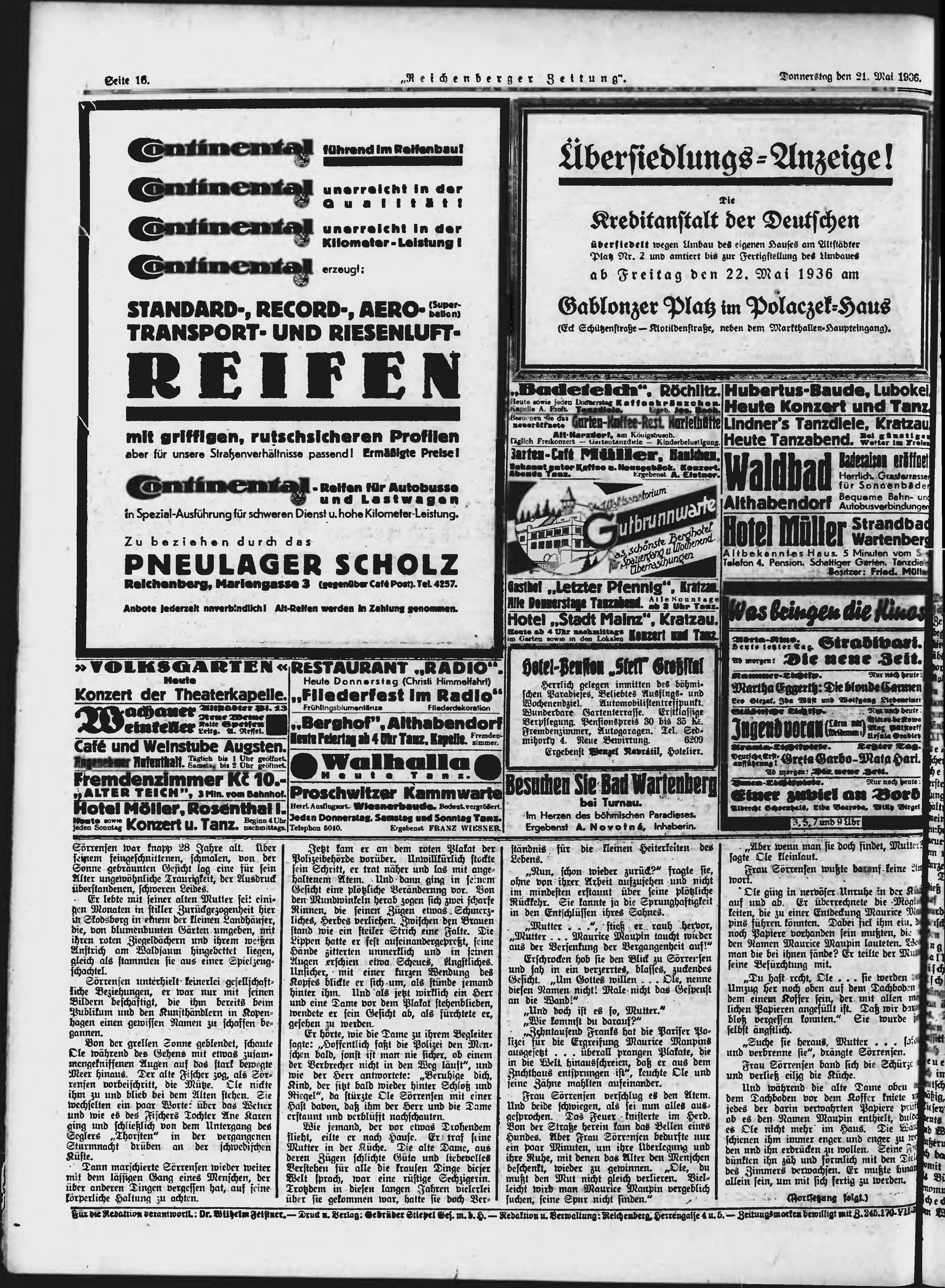 * Datum vydání výtisku: 21.5.1936 Číslo výtisku: 119 Poznámky k výtisku: ranní vydání;