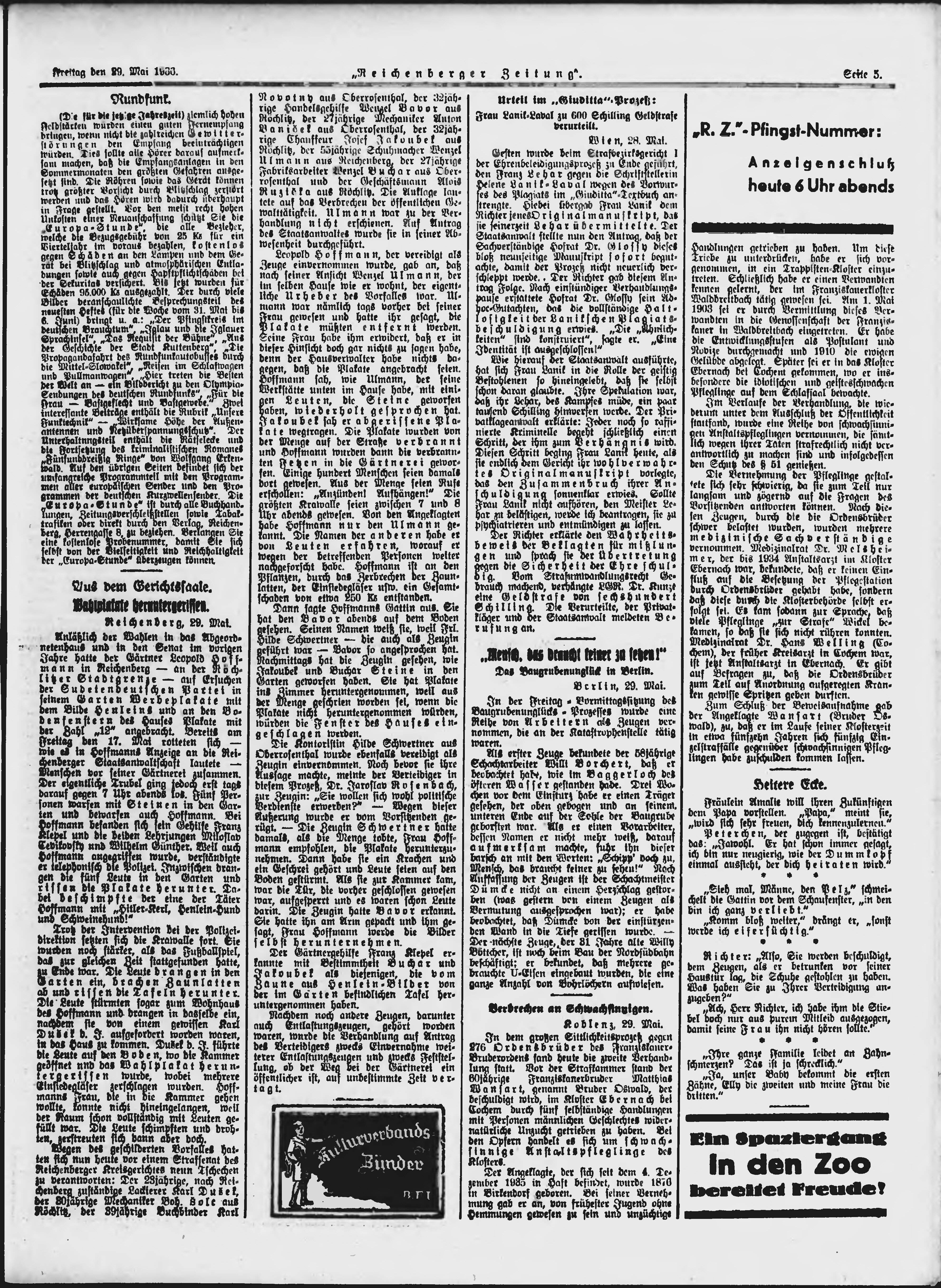 * Datum vydání výtisku: 29.5.1936 Číslo výtisku: 127 Typ výtisku: příloha Poznámky k výtisku: večerní vydání;