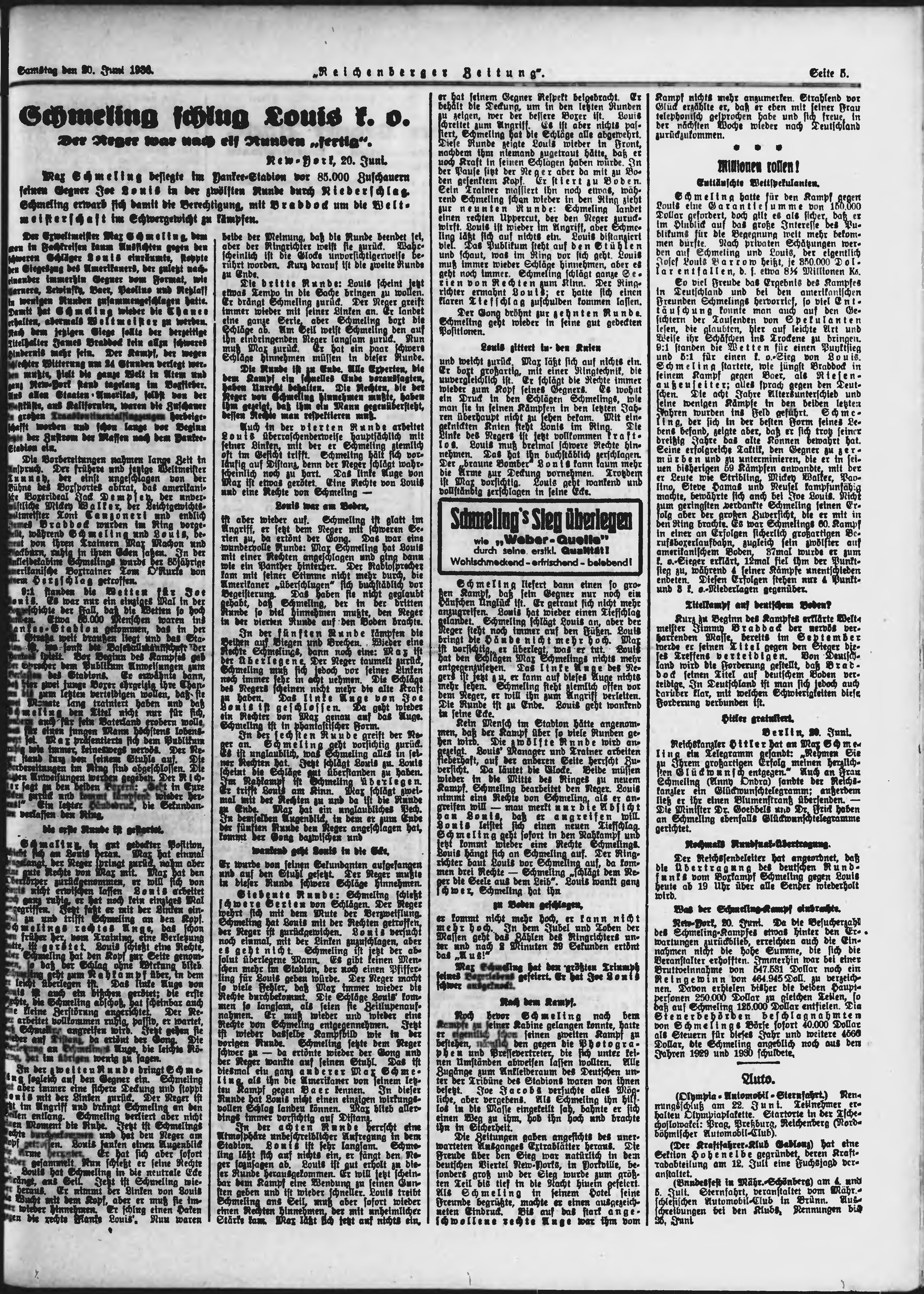 * Datum vydání výtisku: 20.6.1936 Číslo výtisku: 145 Typ výtisku: příloha Poznámky k výtisku: večerní vydání;