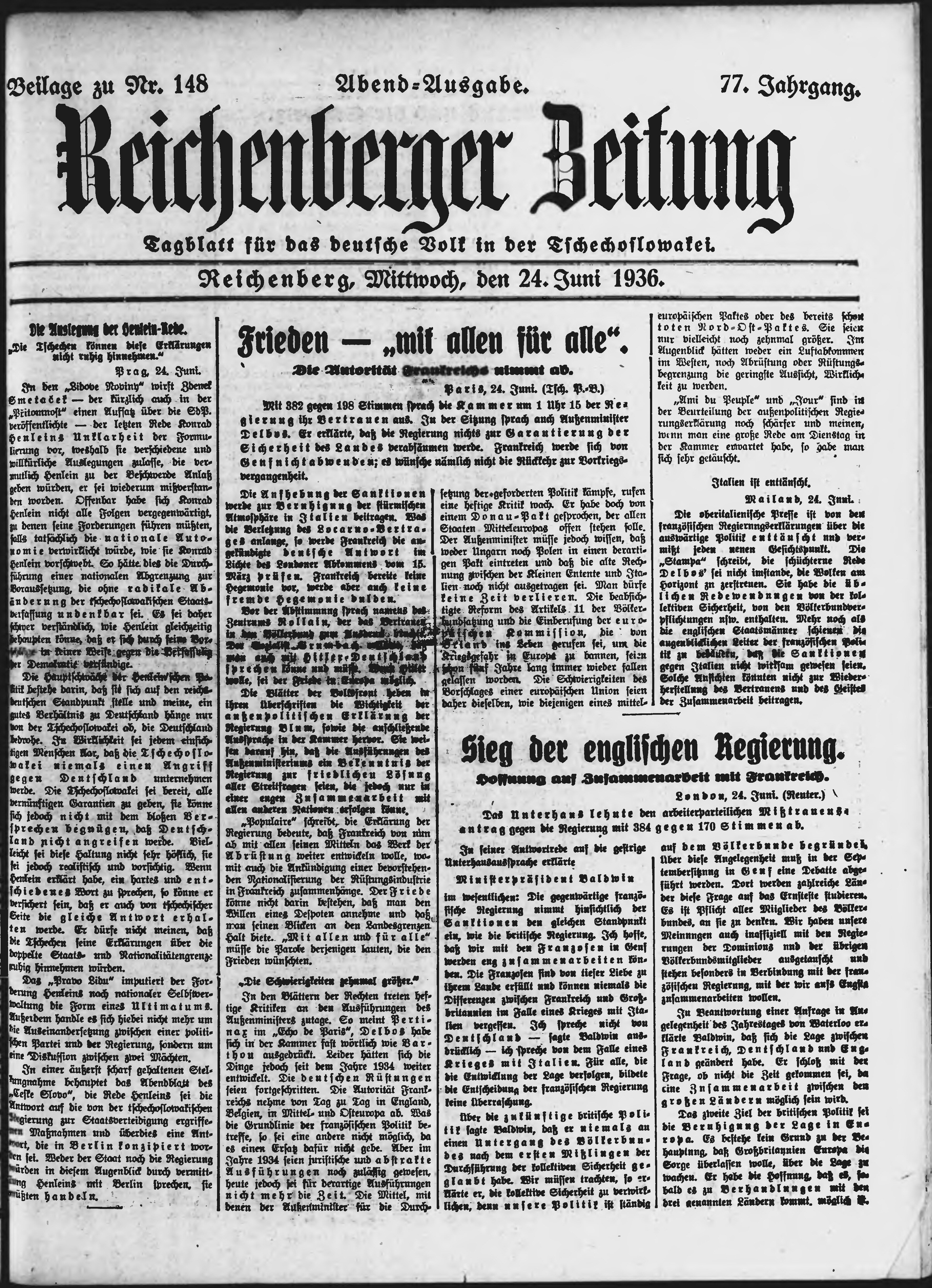 * Datum vydání výtisku: 24.6.1936 Číslo výtisku: 148 Typ výtisku: příloha Poznámky k výtisku: večerní vydání;