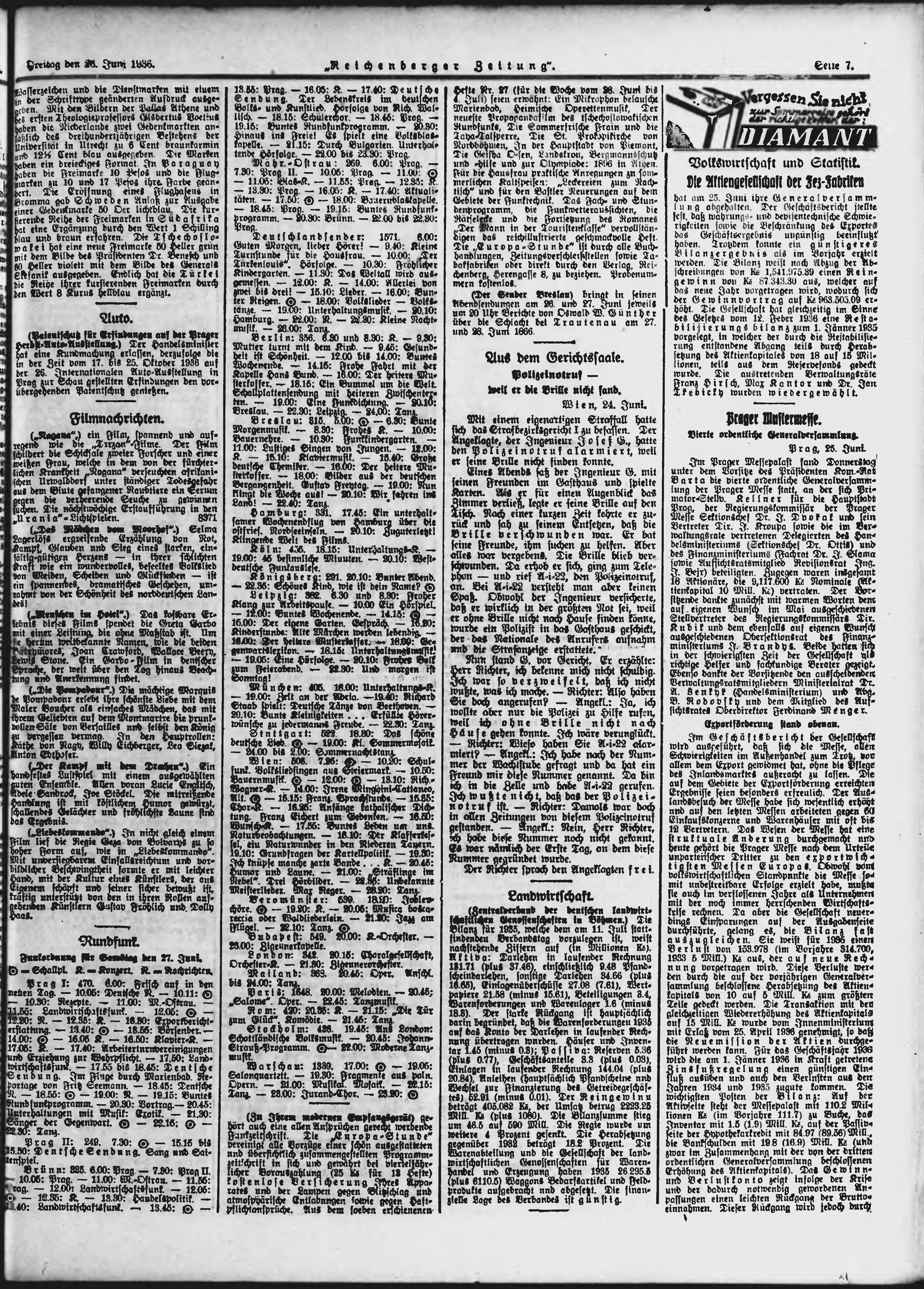 * Datum vydání výtisku: 26.6.1936 Číslo výtisku: 149 Poznámky k výtisku: ranní vydání;