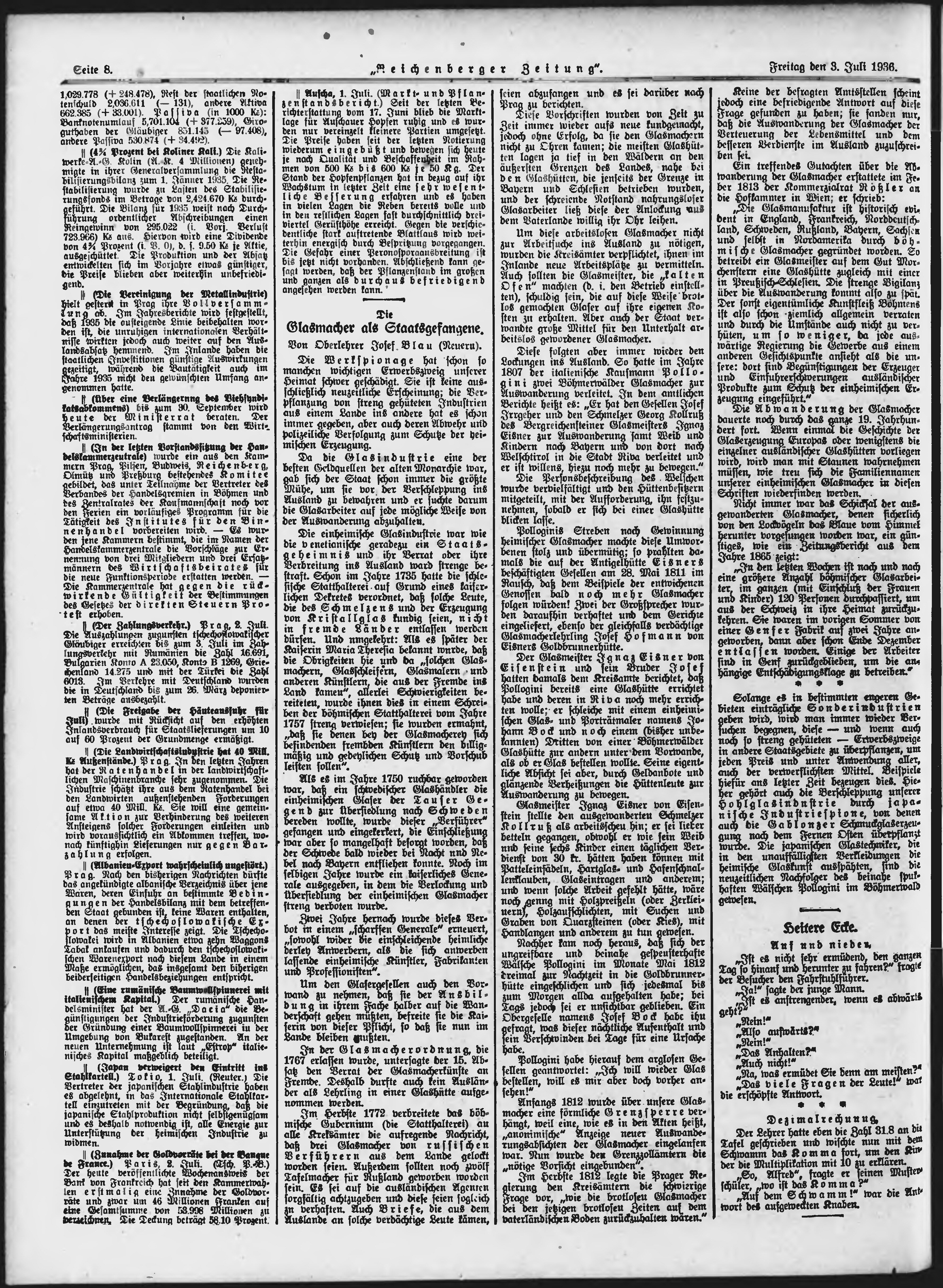 * Datum vydání výtisku: 3.7.1936 Číslo výtisku: 154 Poznámky k výtisku: ranní vydání;