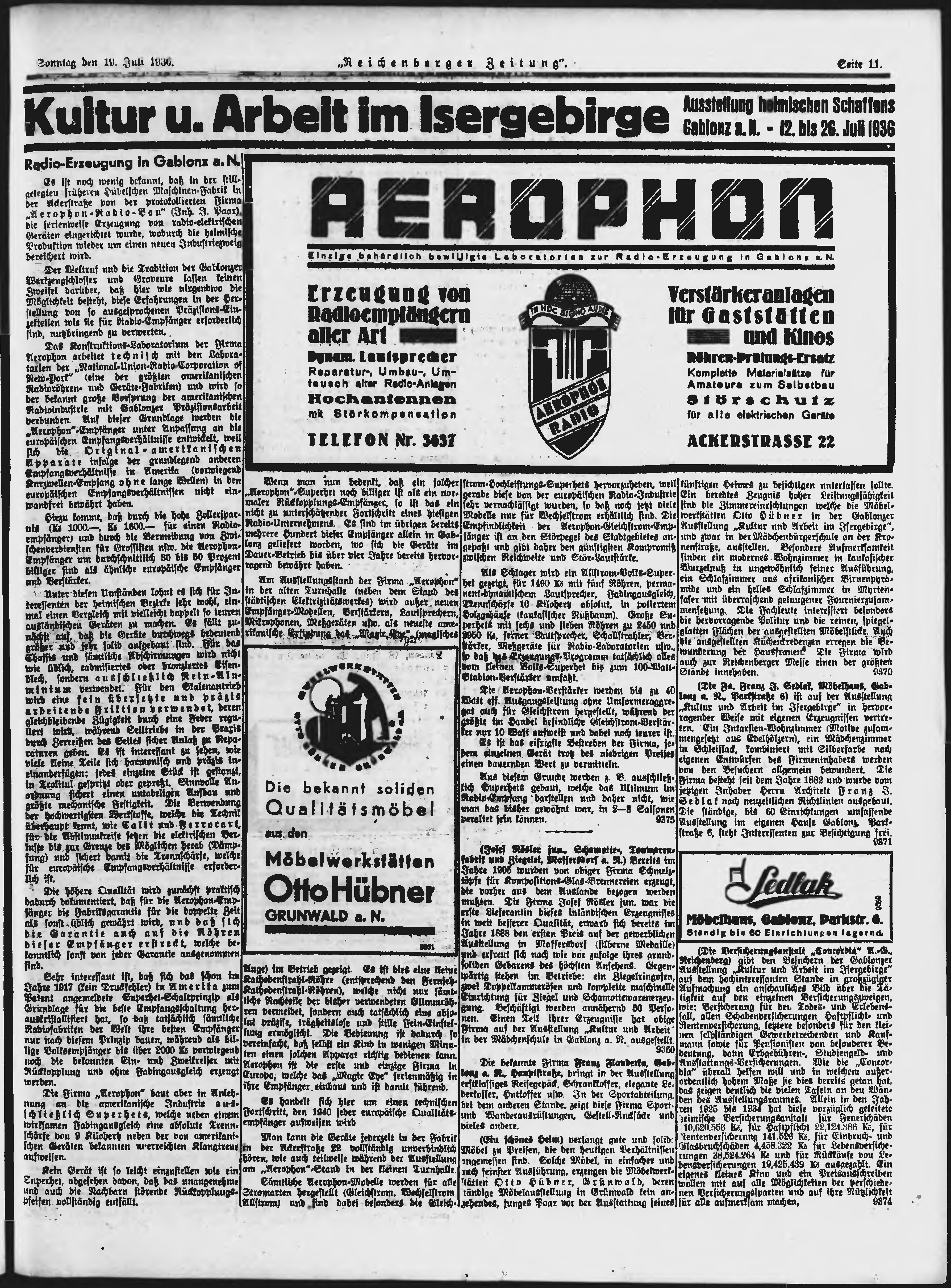 * Datum vydání výtisku: 19.7.1936 Číslo výtisku: 167 Poznámky k výtisku: ranní vydání;