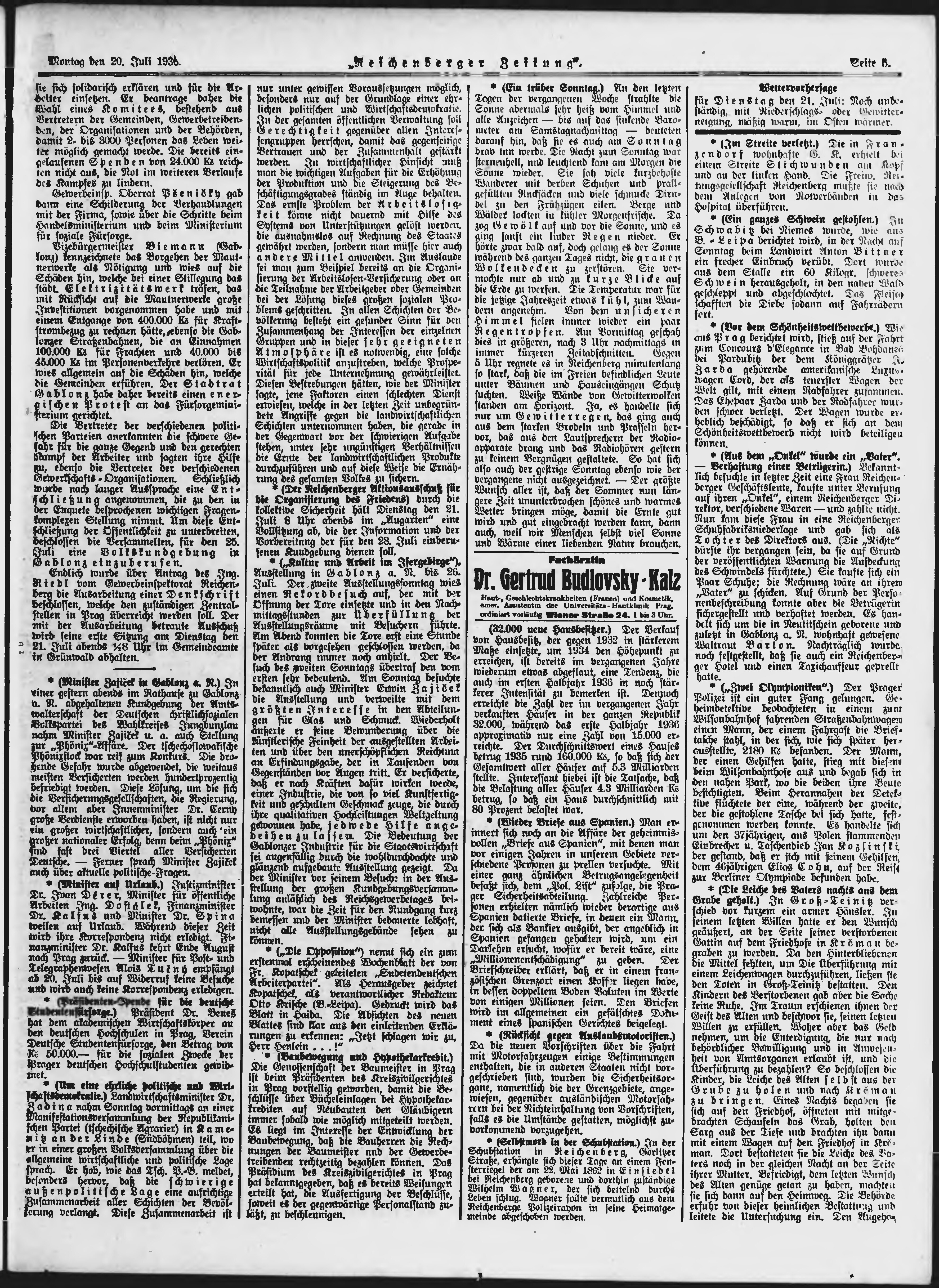 * Datum vydání výtisku: 20.7.1936 Číslo výtisku: 168 Typ výtisku: příloha Poznámky k výtisku: večerní vydání;
