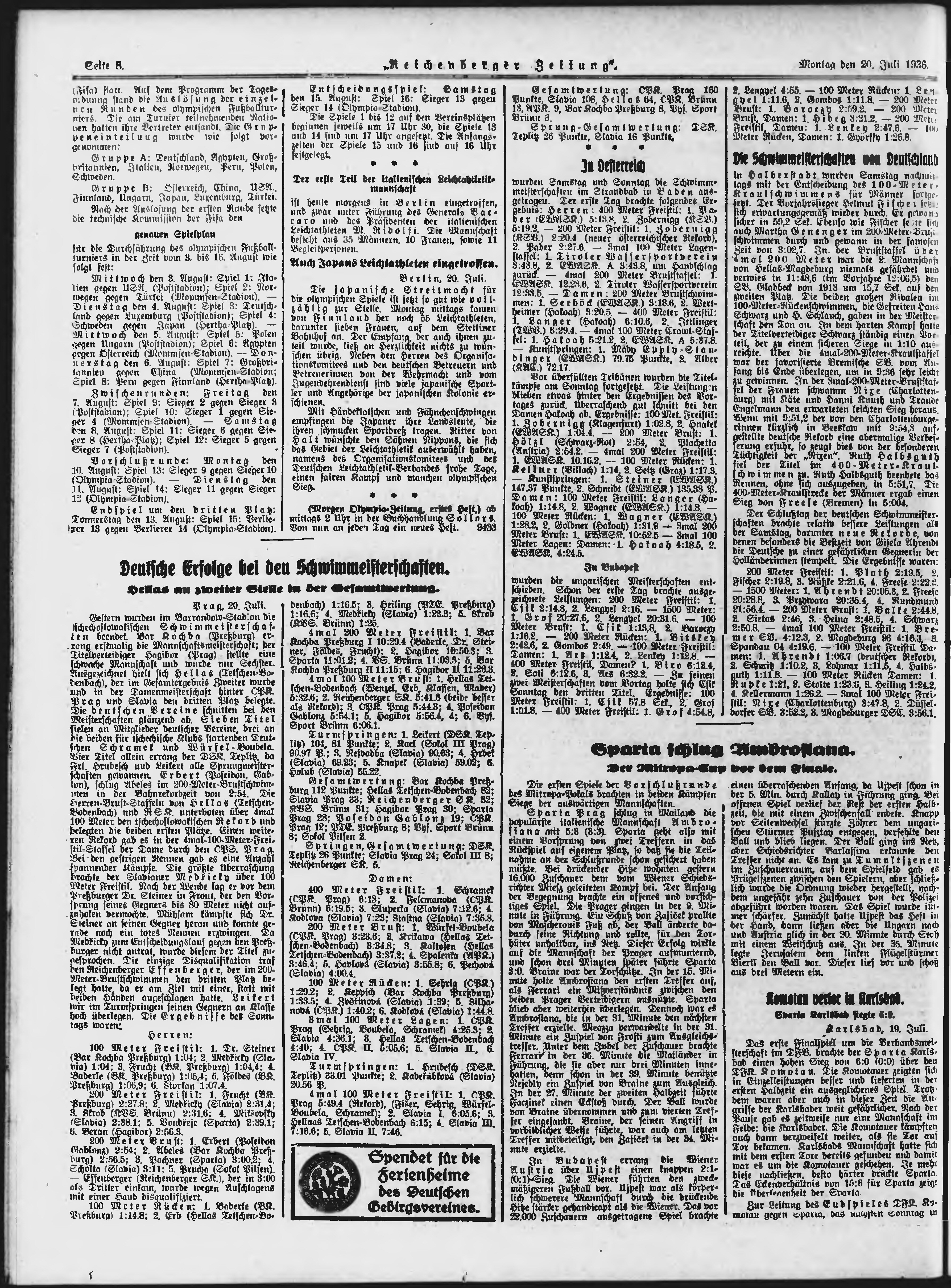 * Datum vydání výtisku: 20.7.1936 Číslo výtisku: 168 Typ výtisku: příloha Poznámky k výtisku: večerní vydání;