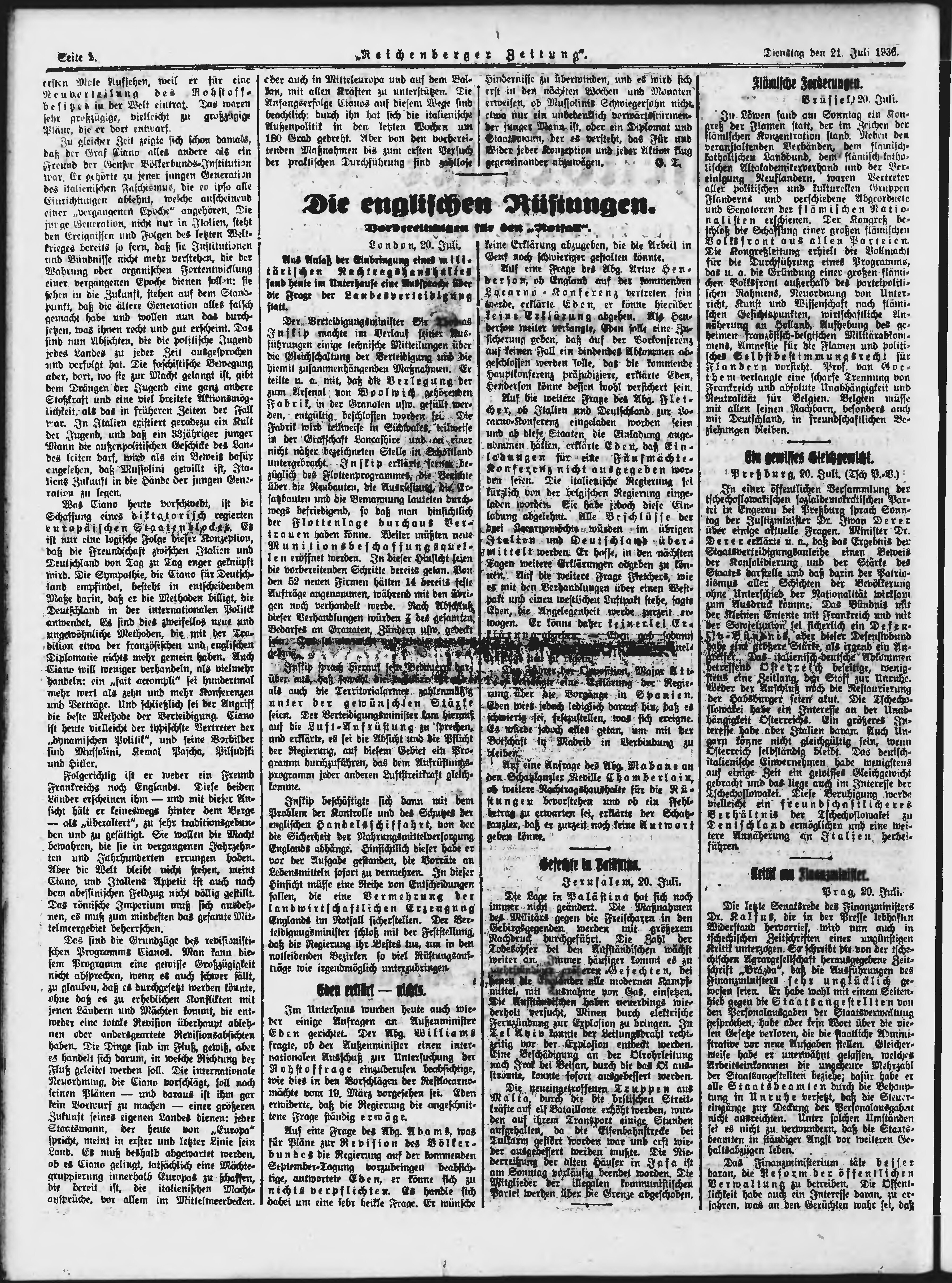 * Datum vydání výtisku: 21.7.1936 Číslo výtisku: 168 Poznámky k výtisku: ranní vydání;