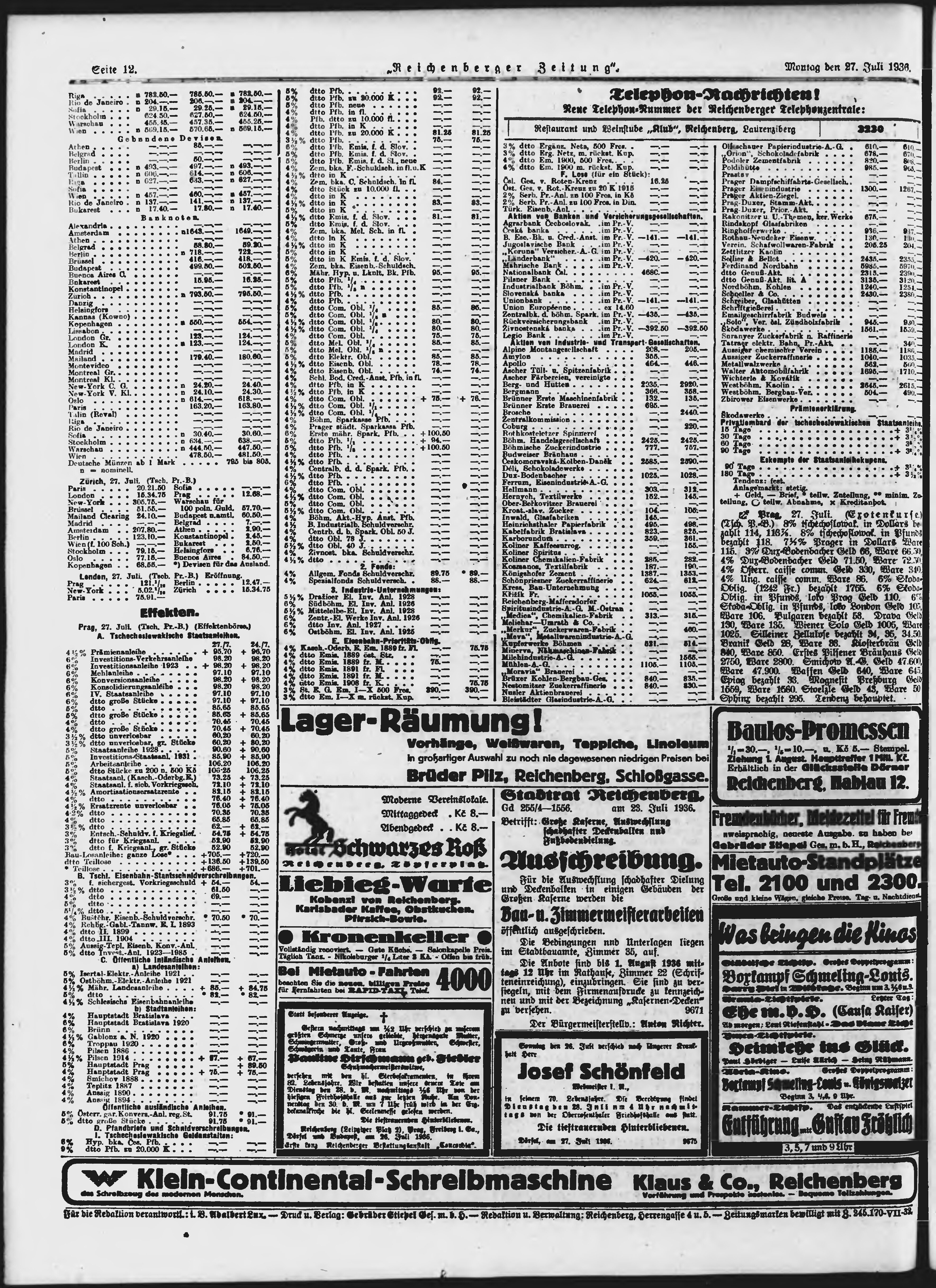 * Datum vydání výtisku: 27.7.1936 Číslo výtisku: 174 Typ výtisku: příloha Poznámky k výtisku: večerní vydání;