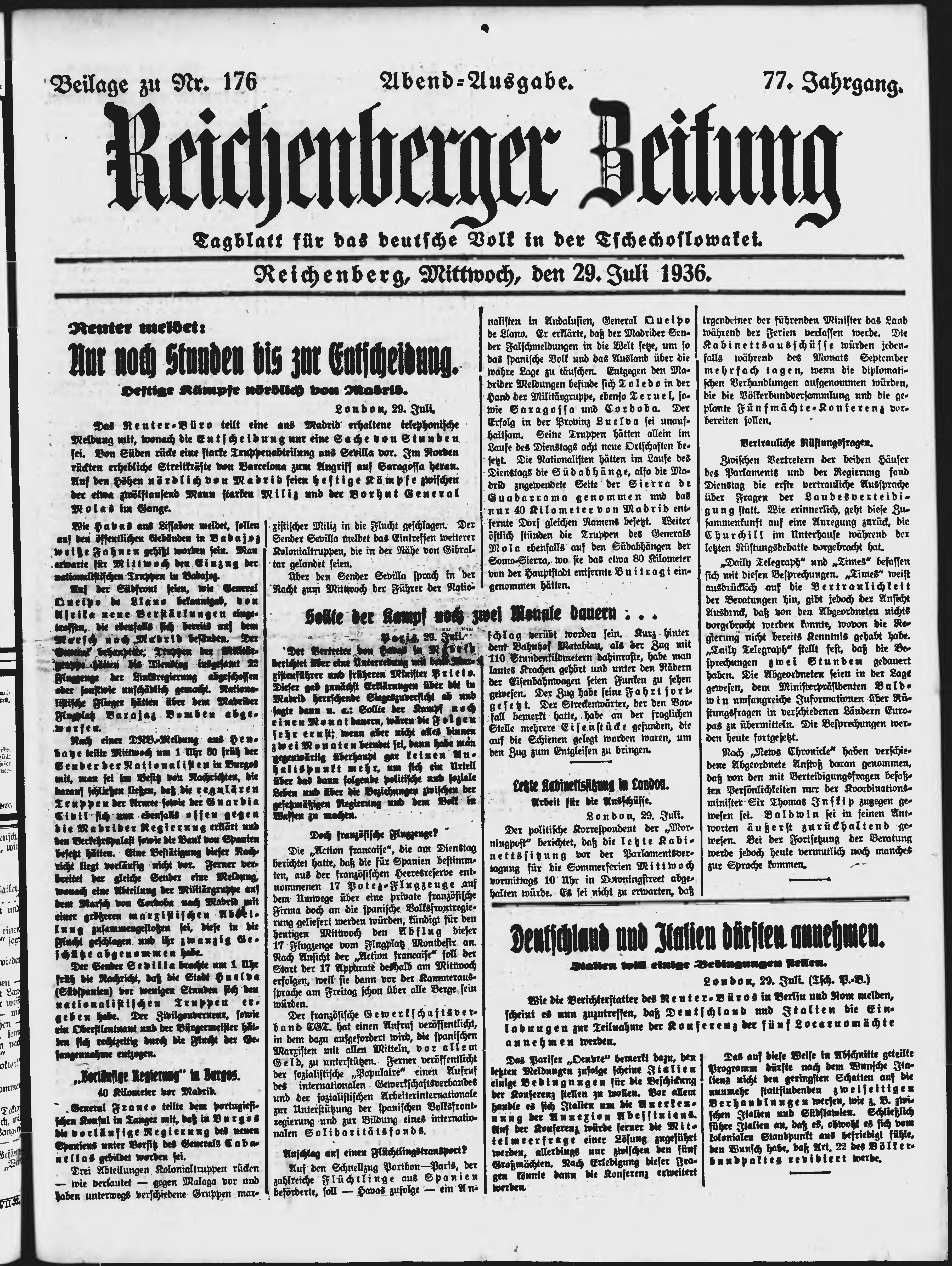 * Datum vydání výtisku: 29.7.1936 Číslo výtisku: 176 Typ výtisku: příloha Poznámky k výtisku: večerní vydání;