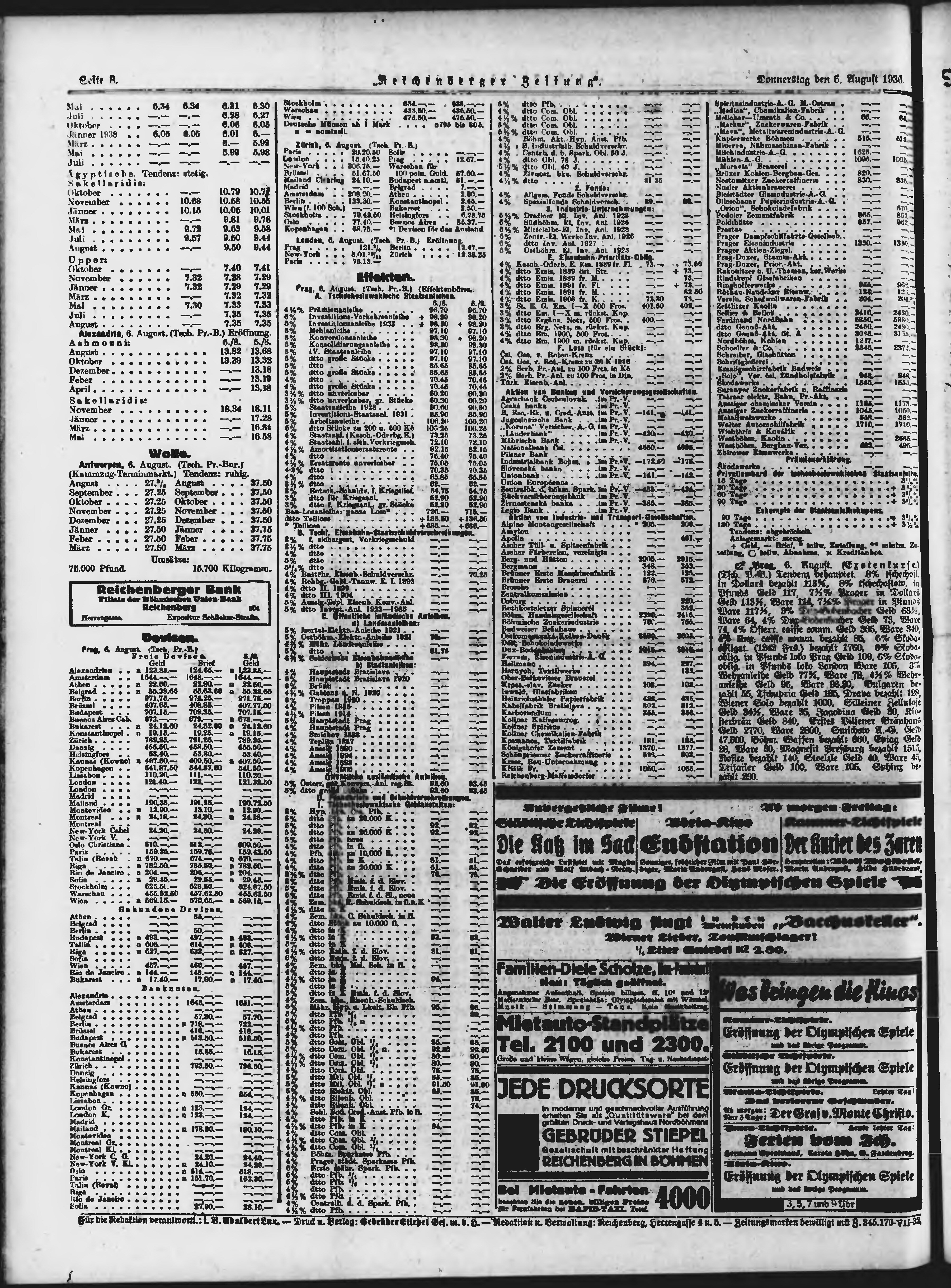 * Datum vydání výtisku: 6.8.1936 Číslo výtisku: 183 Typ výtisku: příloha Poznámky k výtisku: večerní vydání;