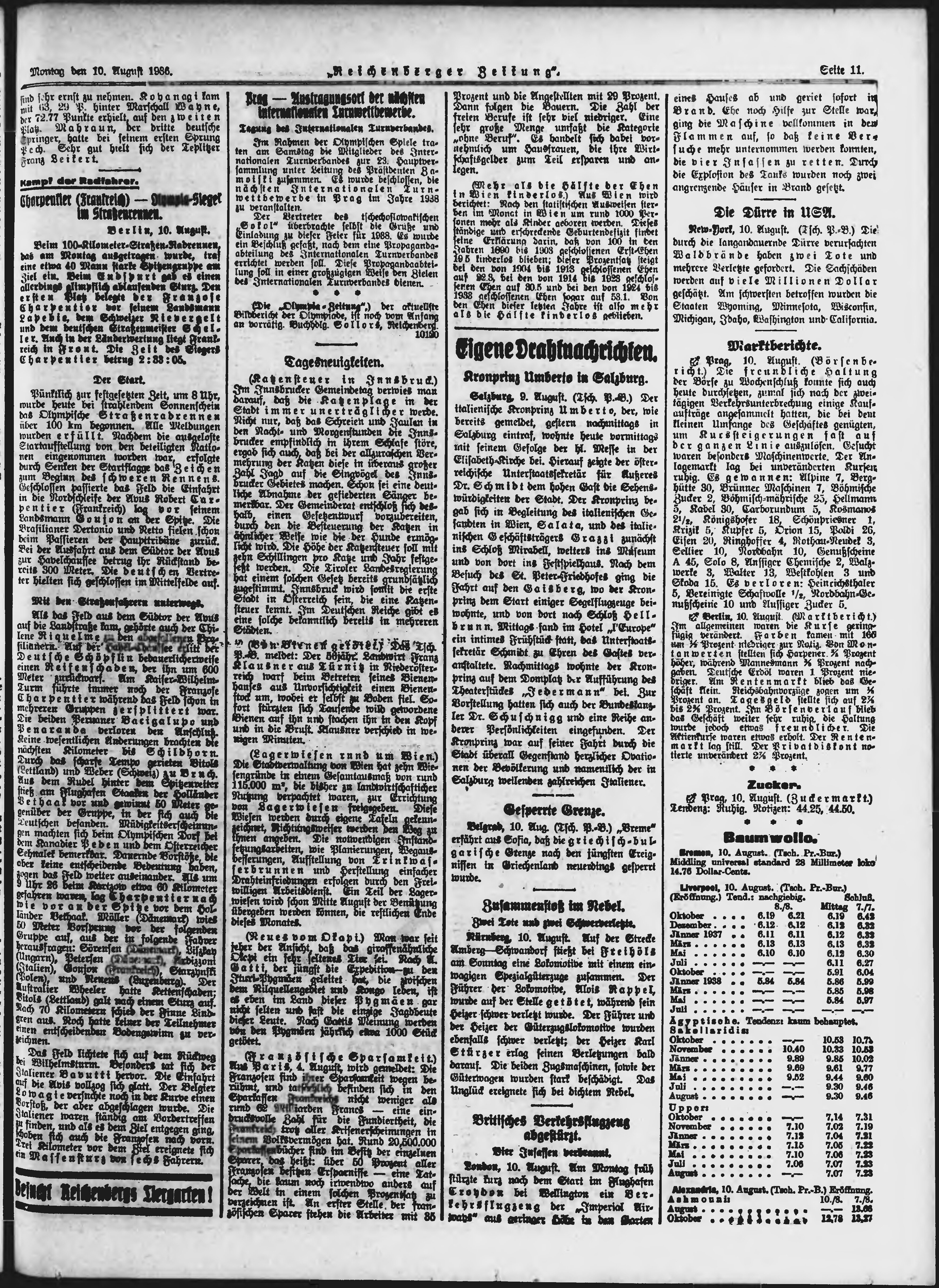 * Datum vydání výtisku: 10.8.1936 Číslo výtisku: 186 Typ výtisku: příloha Poznámky k výtisku: večerní vydání;