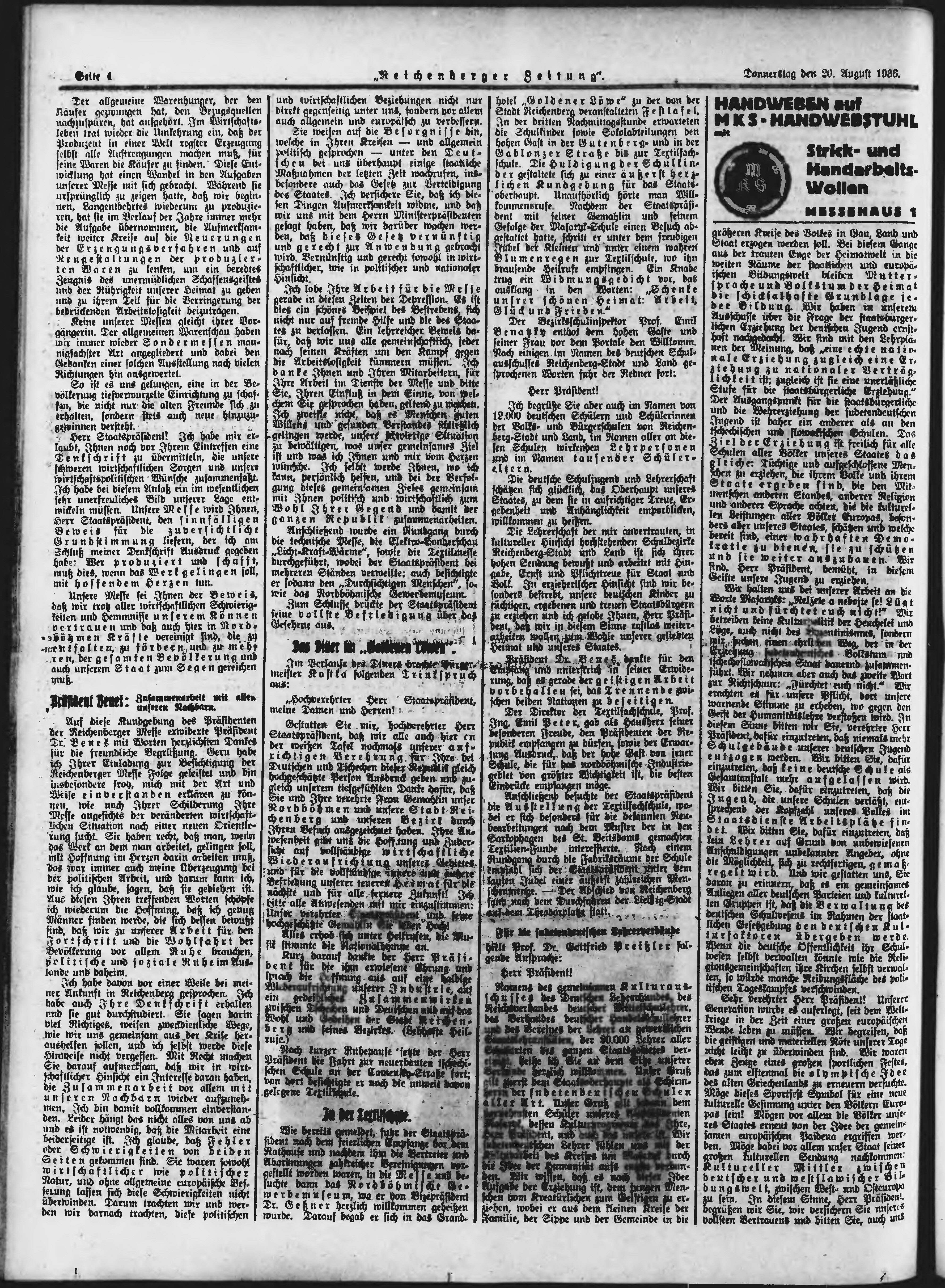 * Datum vydání výtisku: 20.8.1936 Číslo výtisku: 194 Poznámky k výtisku: ranní vydání;