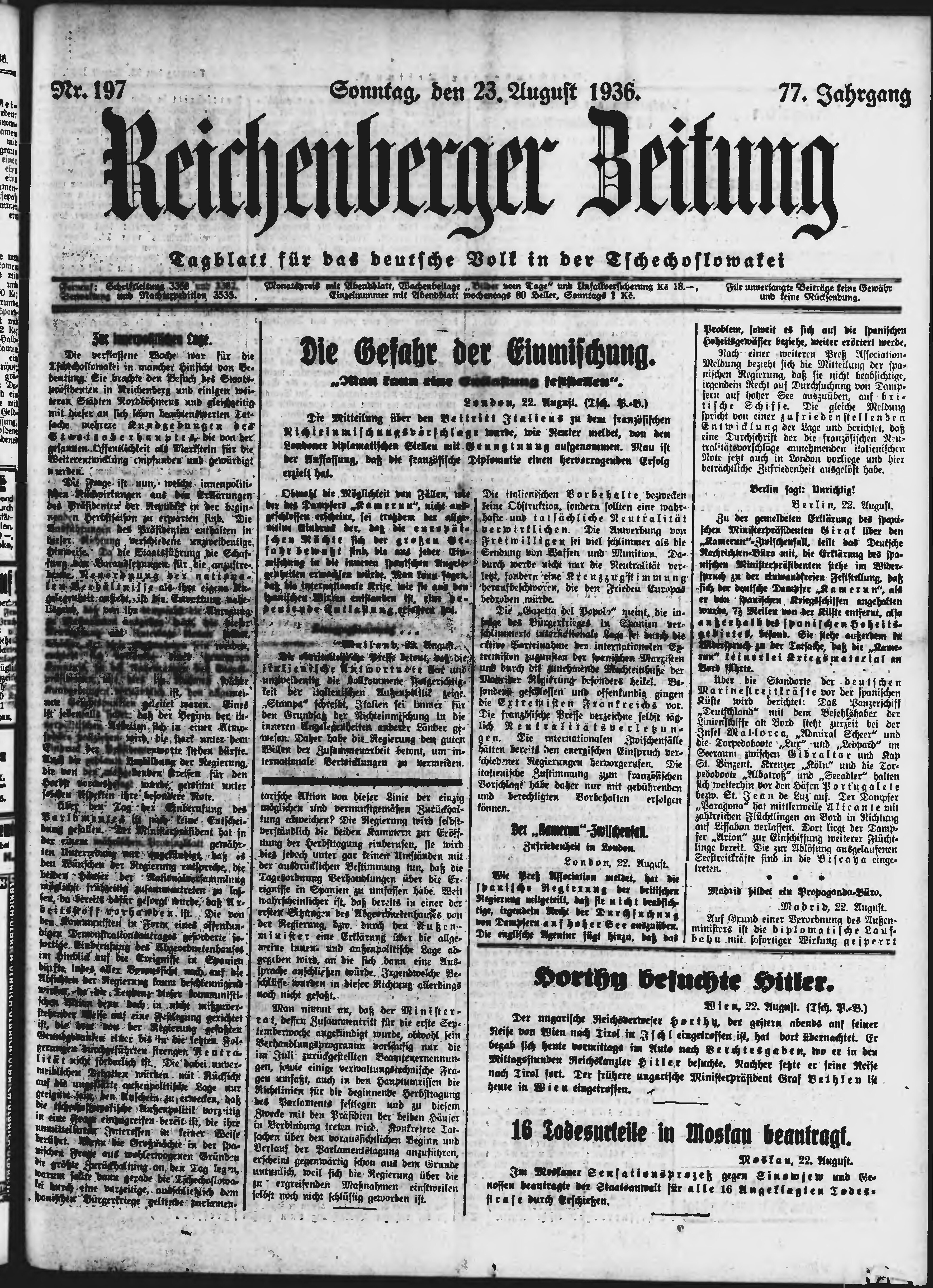 * Datum vydání výtisku: 23.8.1936 Číslo výtisku: 197 Poznámky k výtisku: ranní vydání;