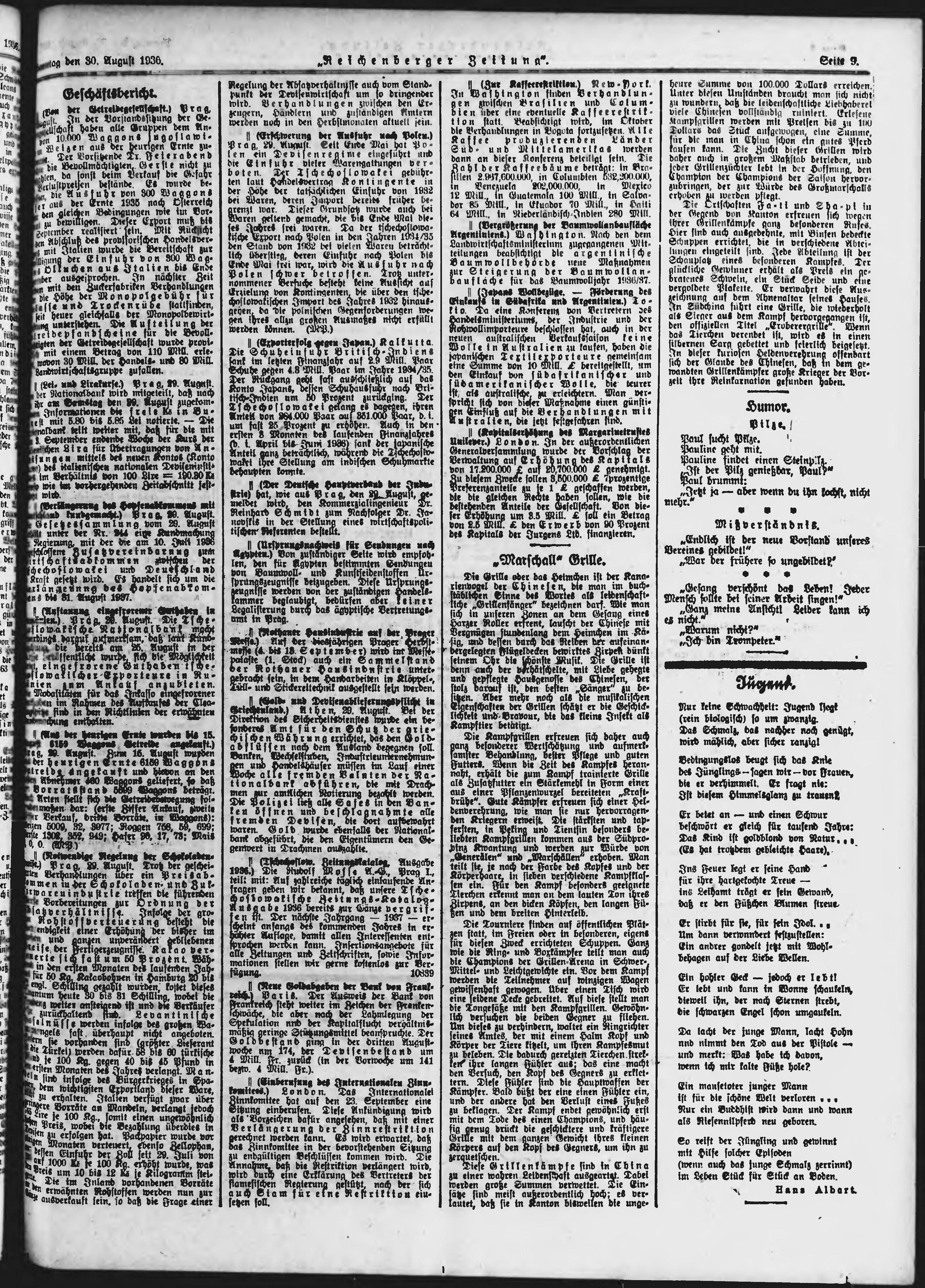 * Datum vydání výtisku: 30.8.1936 Číslo výtisku: 203 Poznámky k výtisku: ranní vydání;