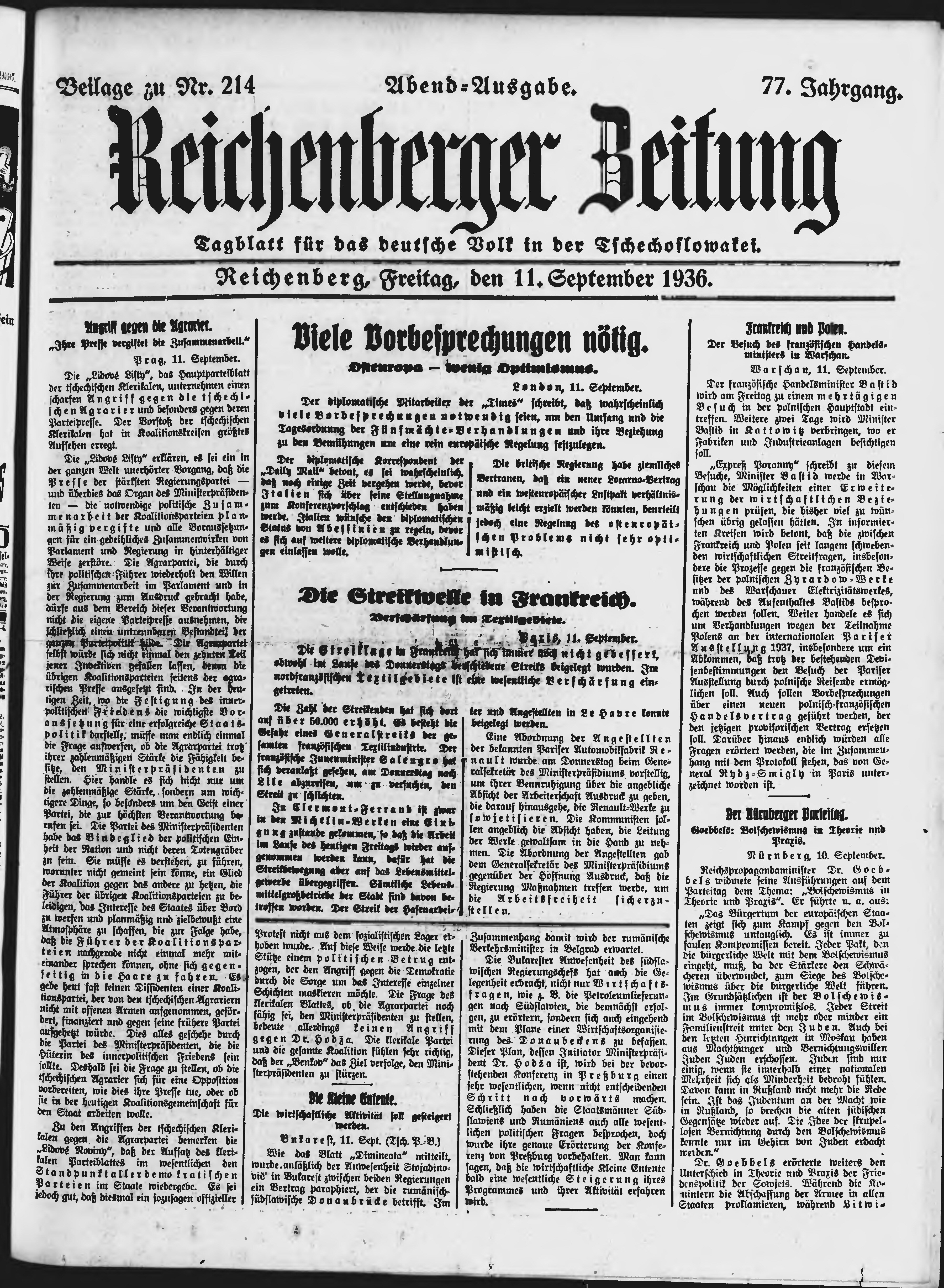 * Datum vydání výtisku: 11.9.1936 Číslo výtisku: 214 Typ výtisku: příloha Poznámky k výtisku: večerní vydání;