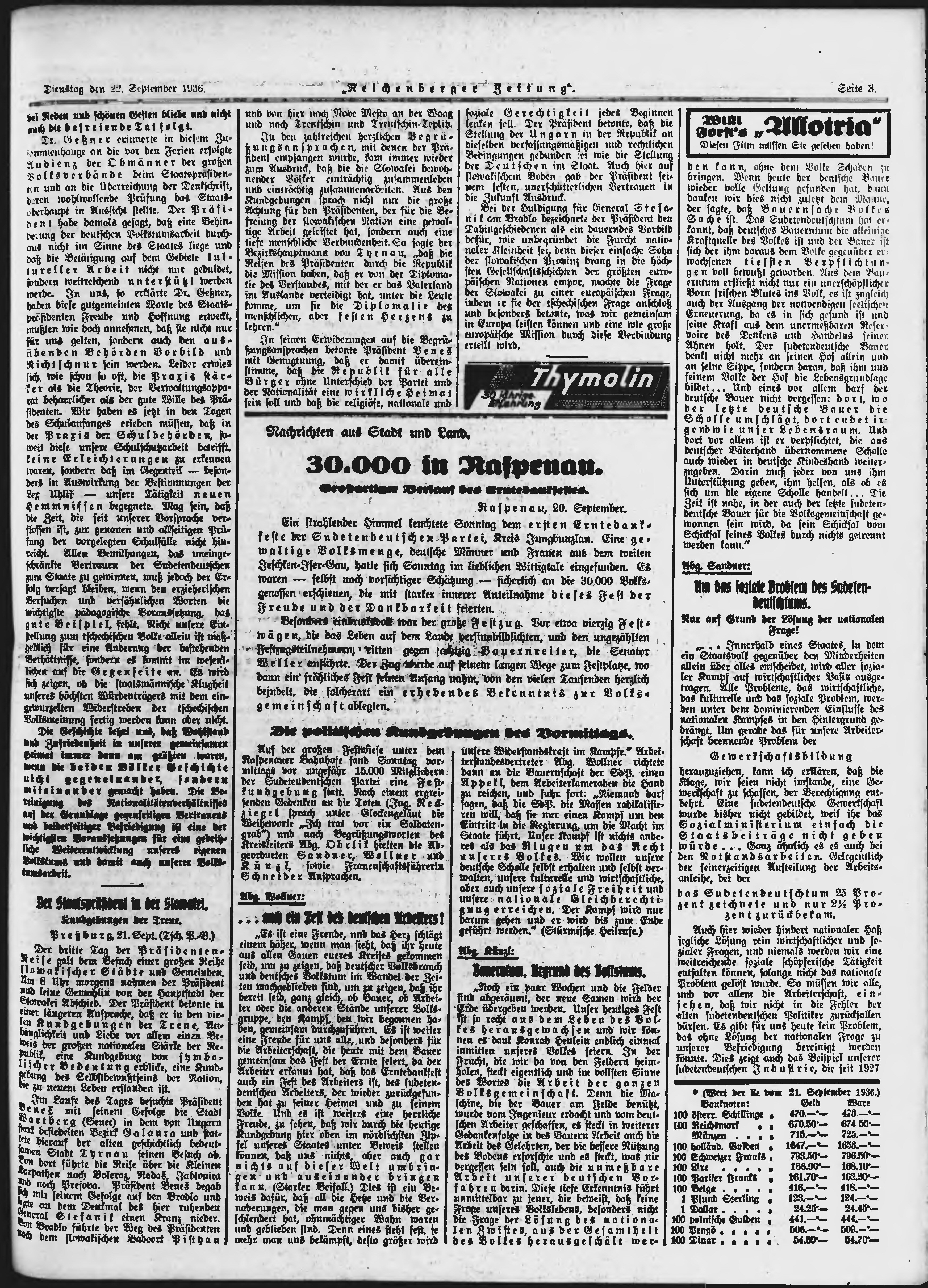 * Datum vydání výtisku: 22.9.1936 Číslo výtisku: 222 Poznámky k výtisku: ranní vydání;
