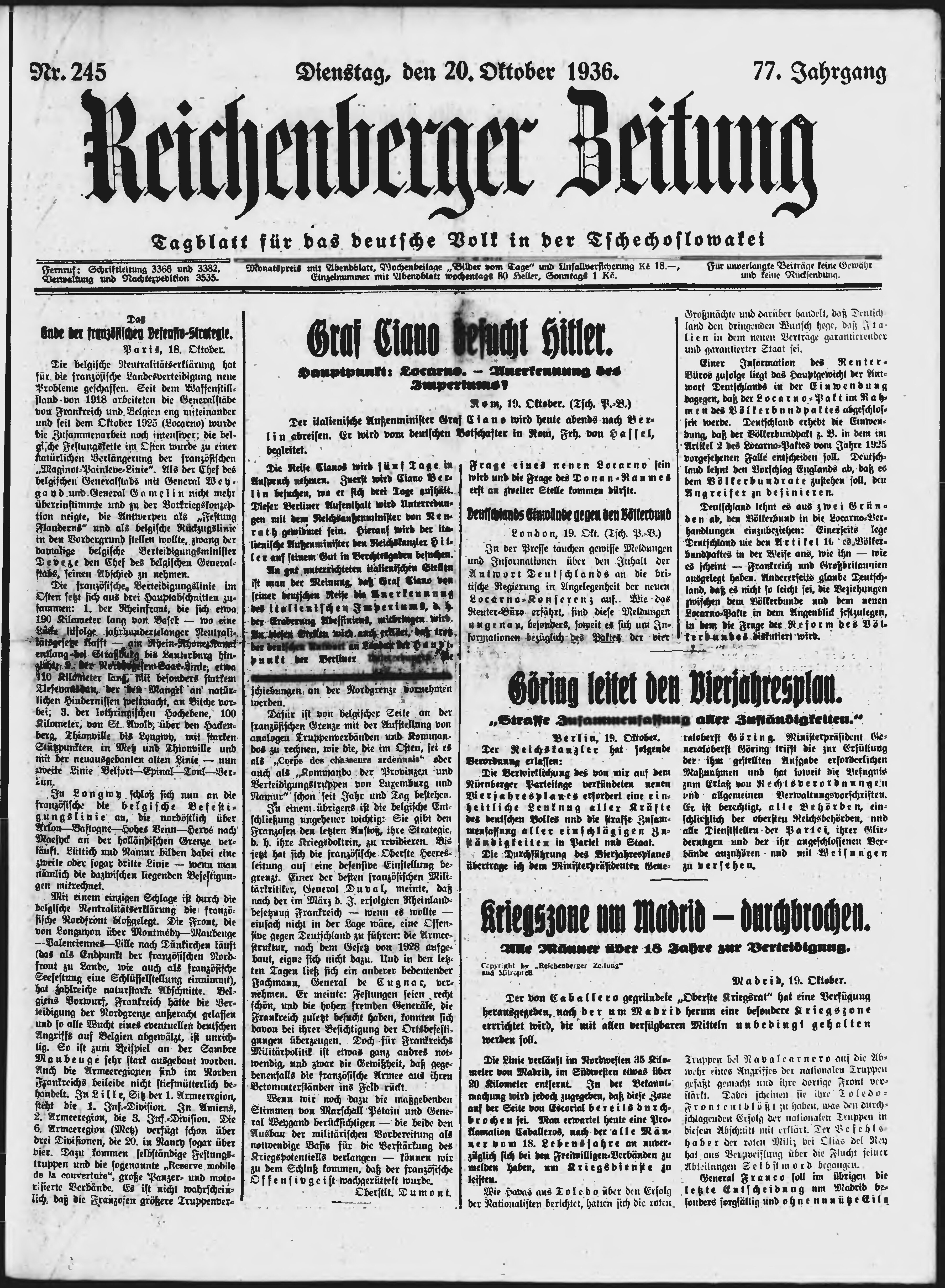 * Datum vydání výtisku: 20.10.1936 Číslo výtisku: 245 Poznámky k výtisku: ranní vydání;