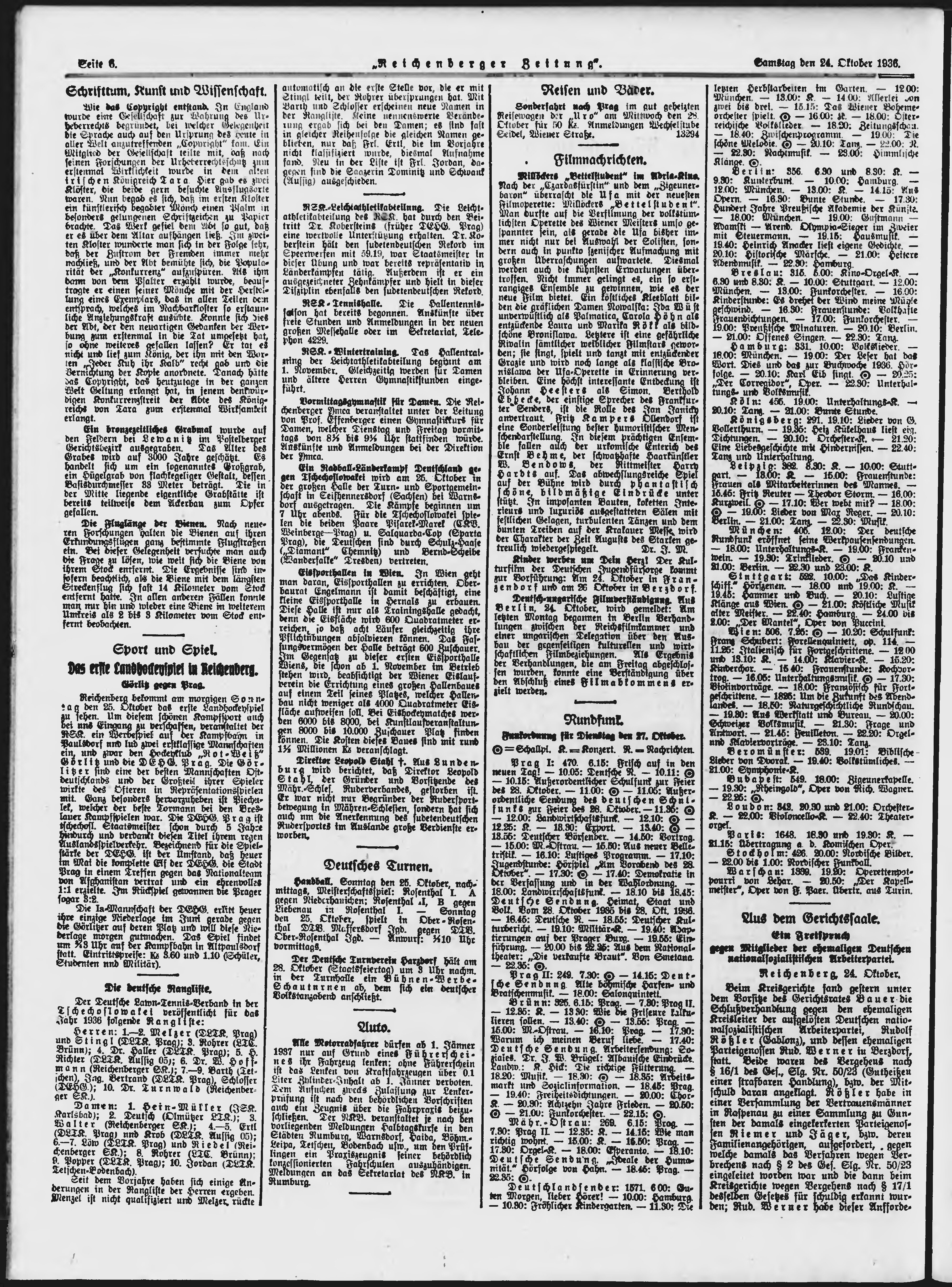 * Datum vydání výtisku: 24.10.1936 Číslo výtisku: 250 Typ výtisku: příloha Poznámky k výtisku: večerní vydání;