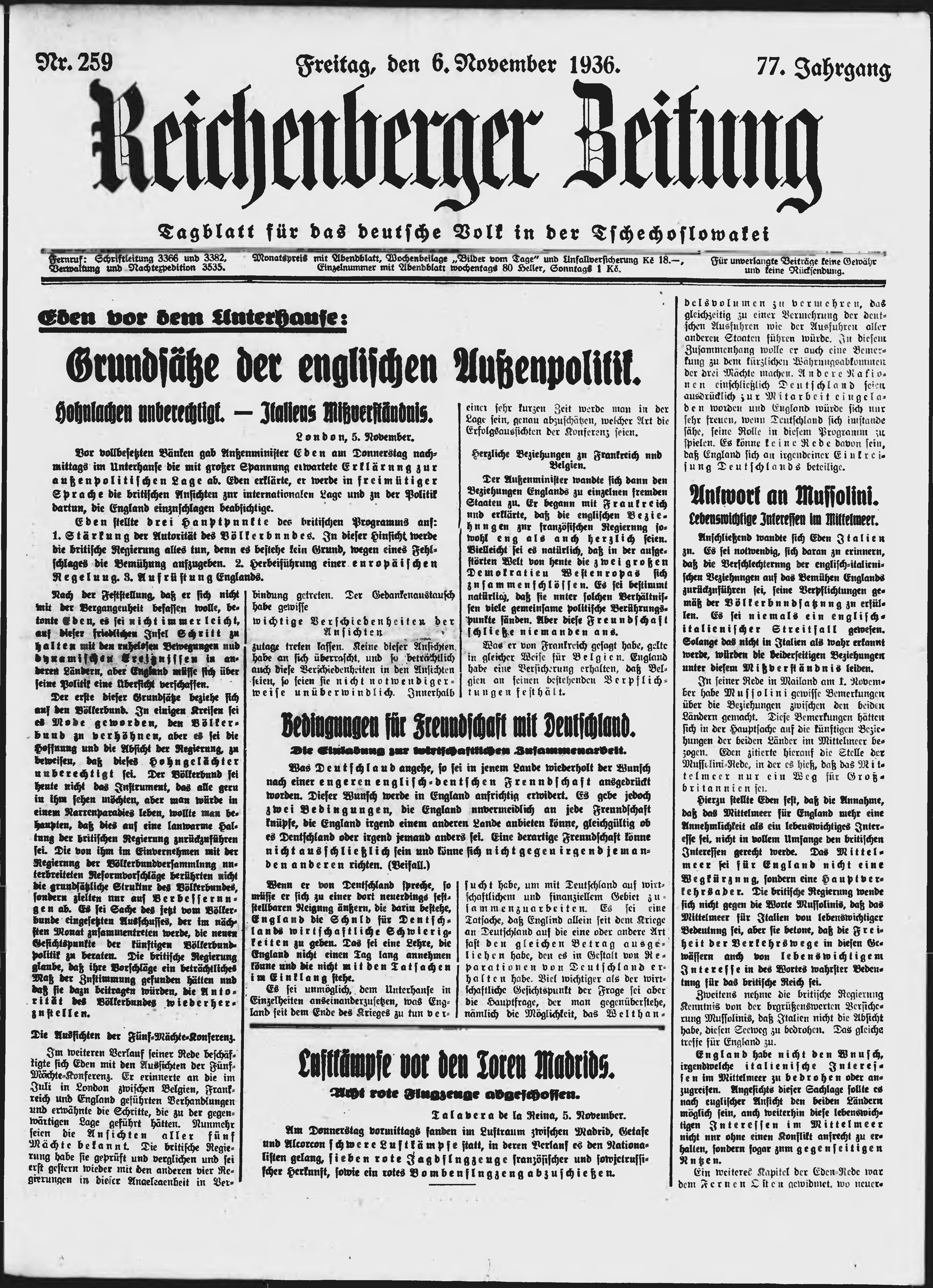 * Datum vydání výtisku: 6.11.1936 Číslo výtisku: 259 Poznámky k výtisku: ranní vydání;