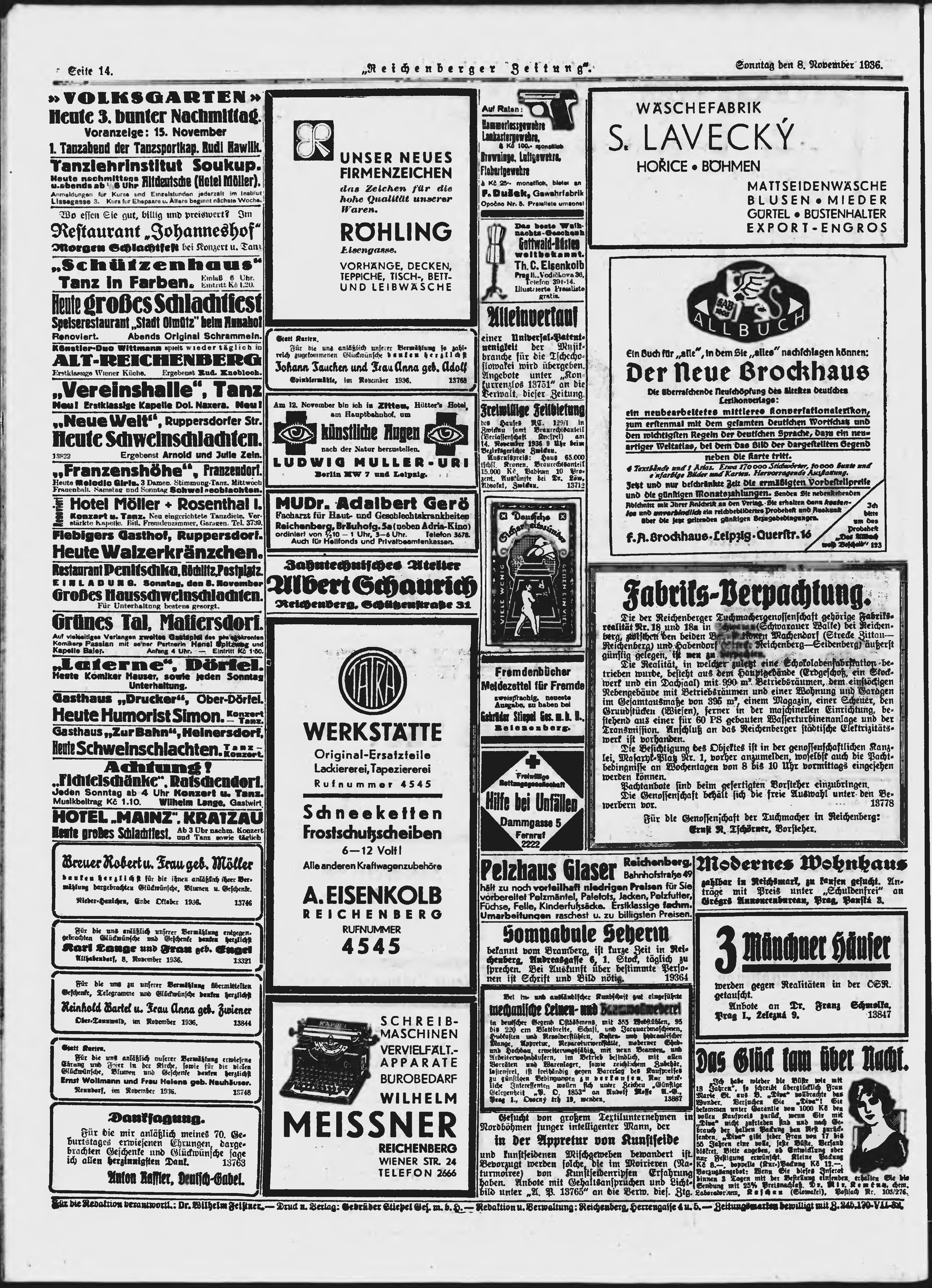 * Datum vydání výtisku: 8.11.1936 Číslo výtisku: 261 Poznámky k výtisku: ranní vydání;
