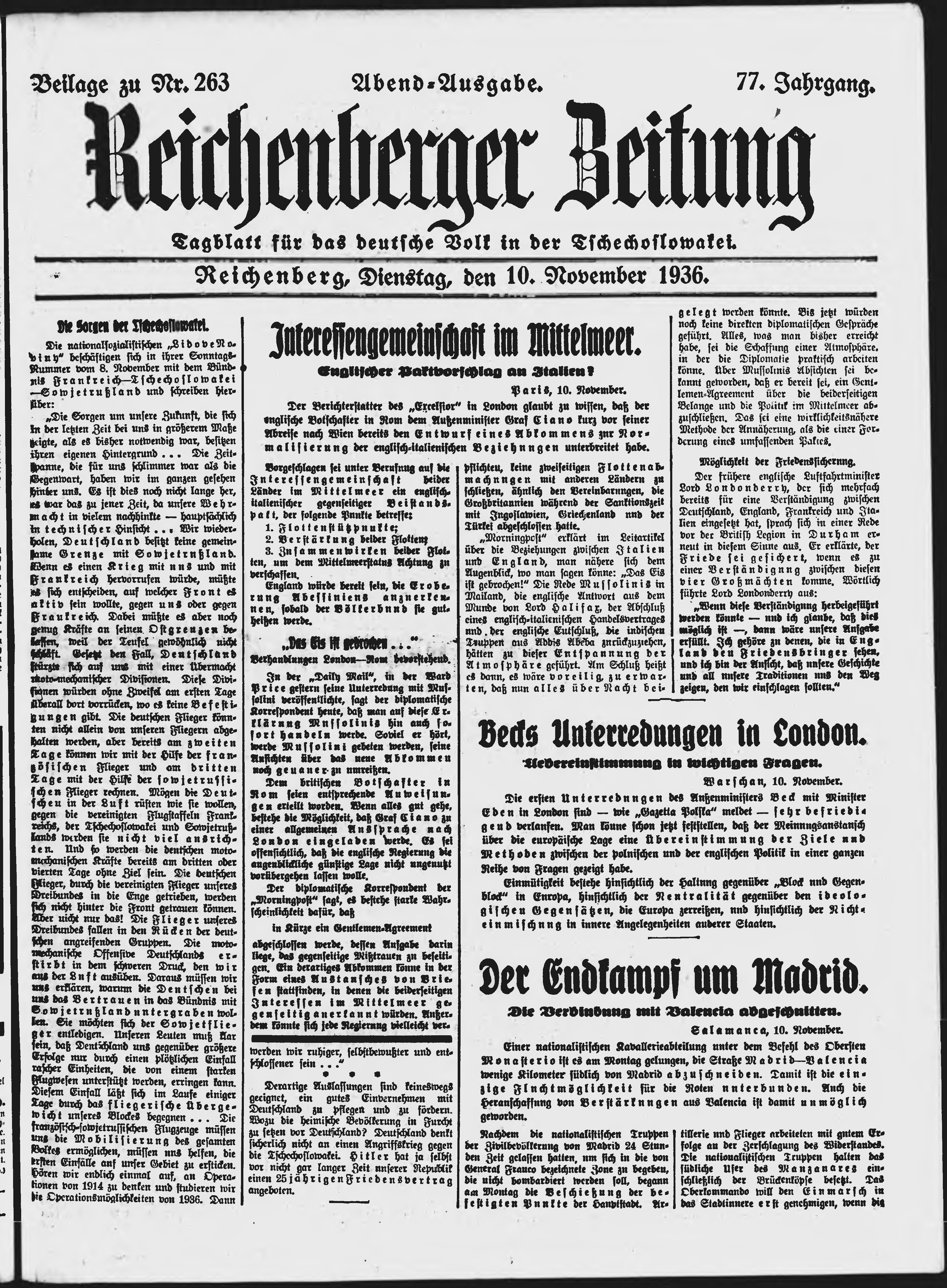 * Datum vydání výtisku: 10.11.1936 Číslo výtisku: 263 Typ výtisku: příloha Poznámky k výtisku: večerní vydání;