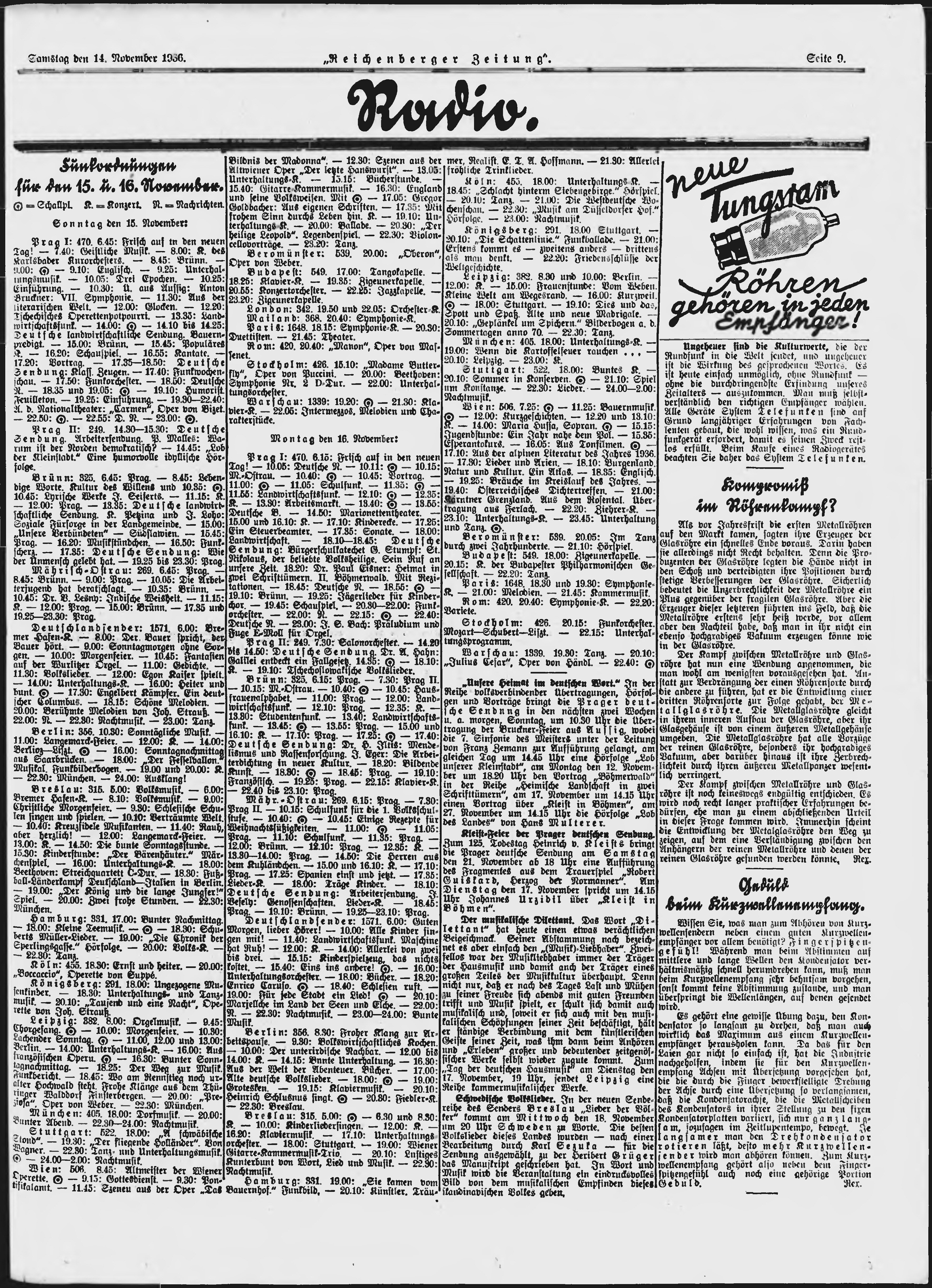 * Datum vydání výtisku: 14.11.1936 Číslo výtisku: 266 Poznámky k výtisku: ranní vydání;