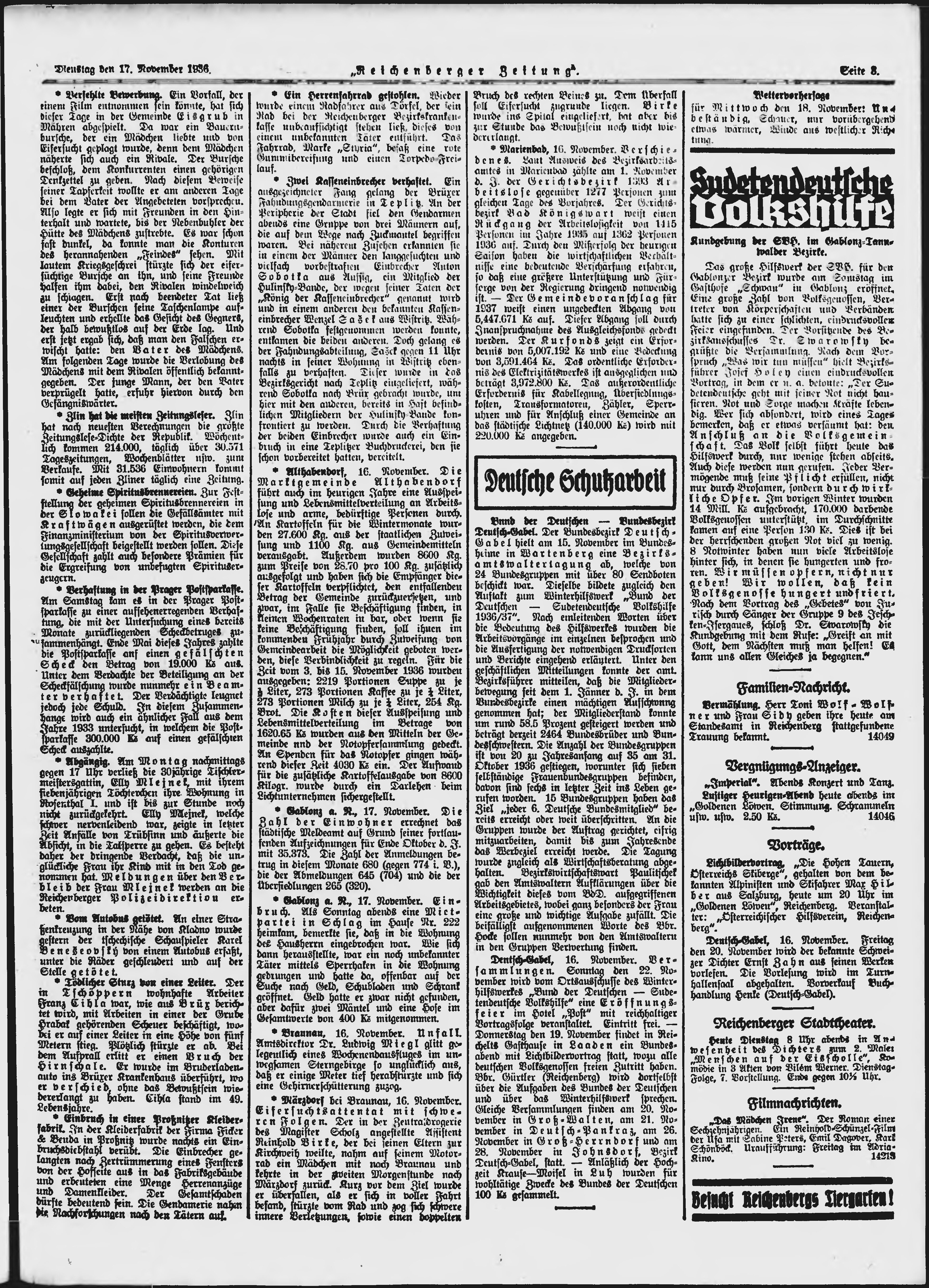 * Datum vydání výtisku: 17.11.1936 Číslo výtisku: 269 Typ výtisku: příloha Poznámky k výtisku: večerní vydání;