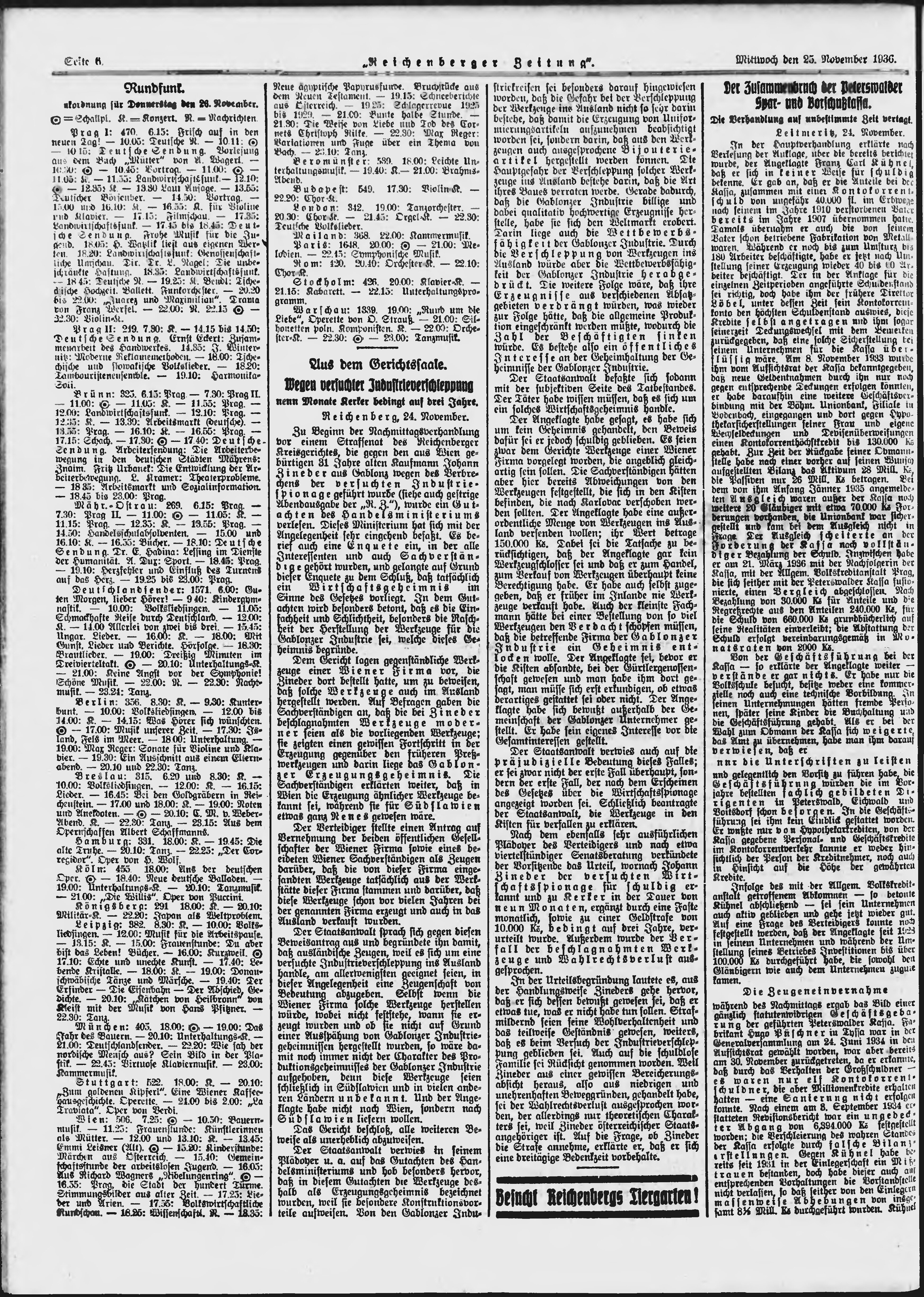 * Datum vydání výtisku: 25.11.1936 Číslo výtisku: 275 Poznámky k výtisku: ranní vydání; nekonzistence číslování výtisku;
