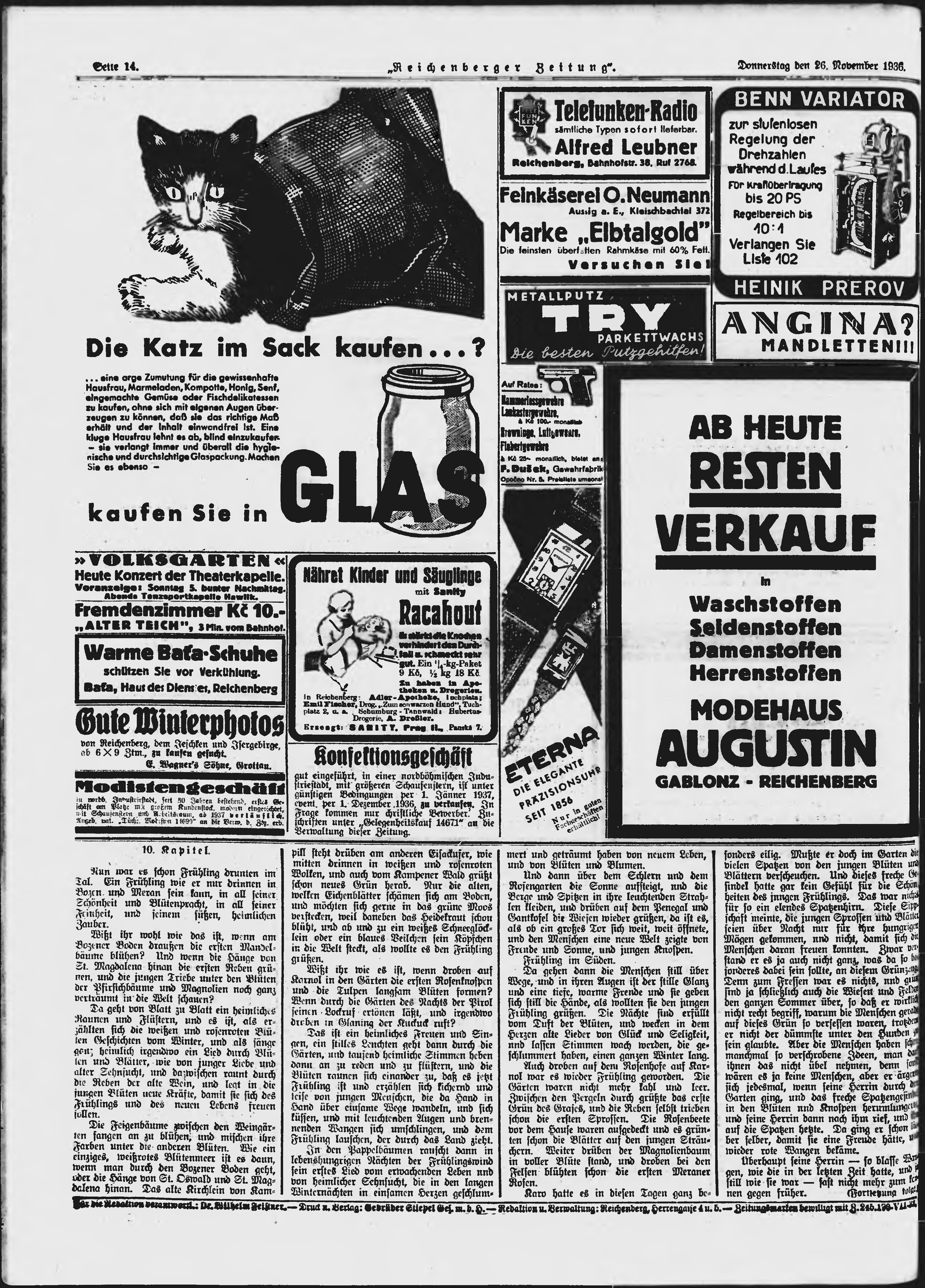* Datum vydání výtisku: 26.11.1936 Číslo výtisku: 276 Poznámky k výtisku: ranní vydání;