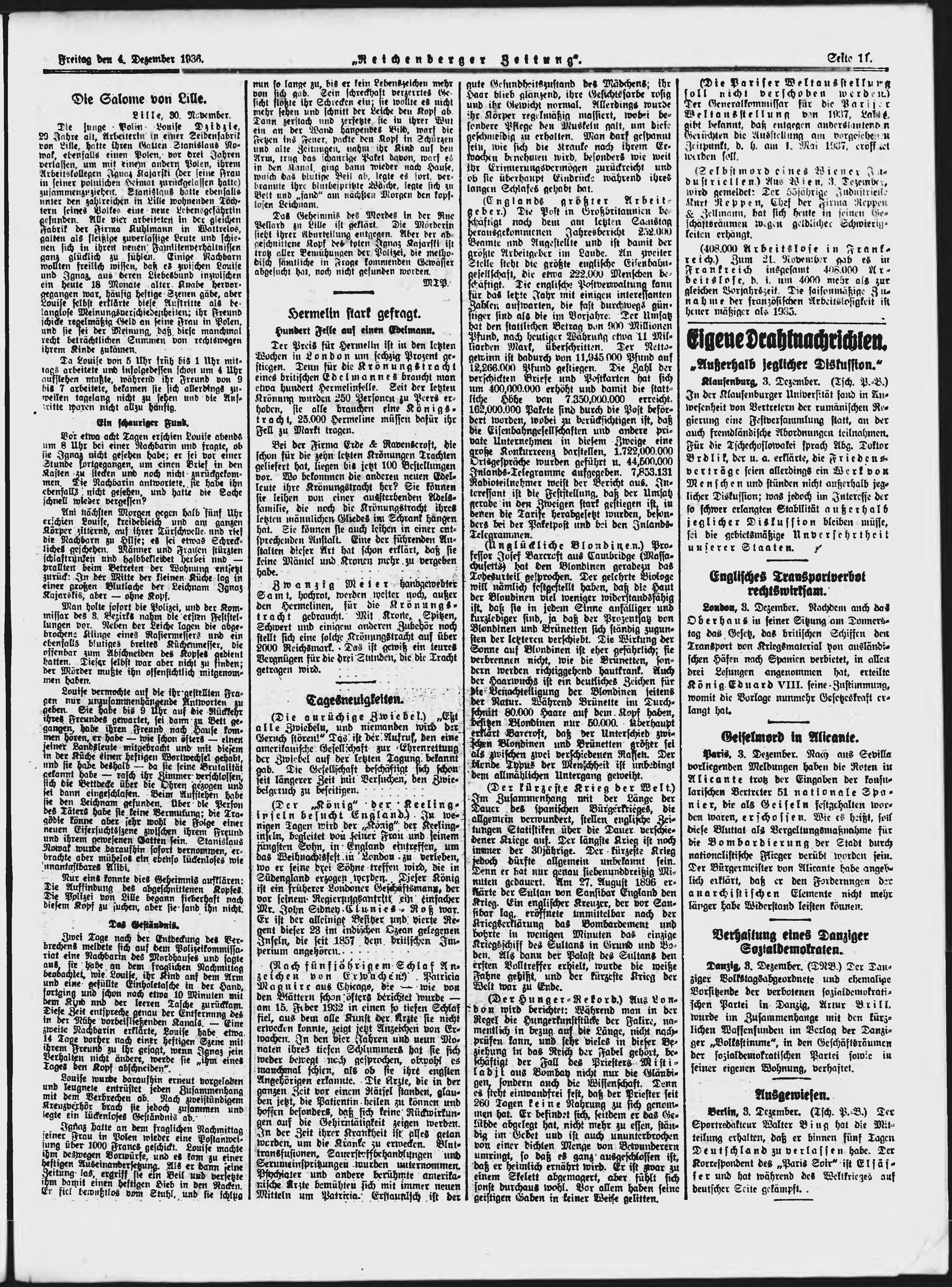 * Datum vydání výtisku: 4.12.1936 Číslo výtisku: 283 Poznámky k výtisku: ranní vydání;