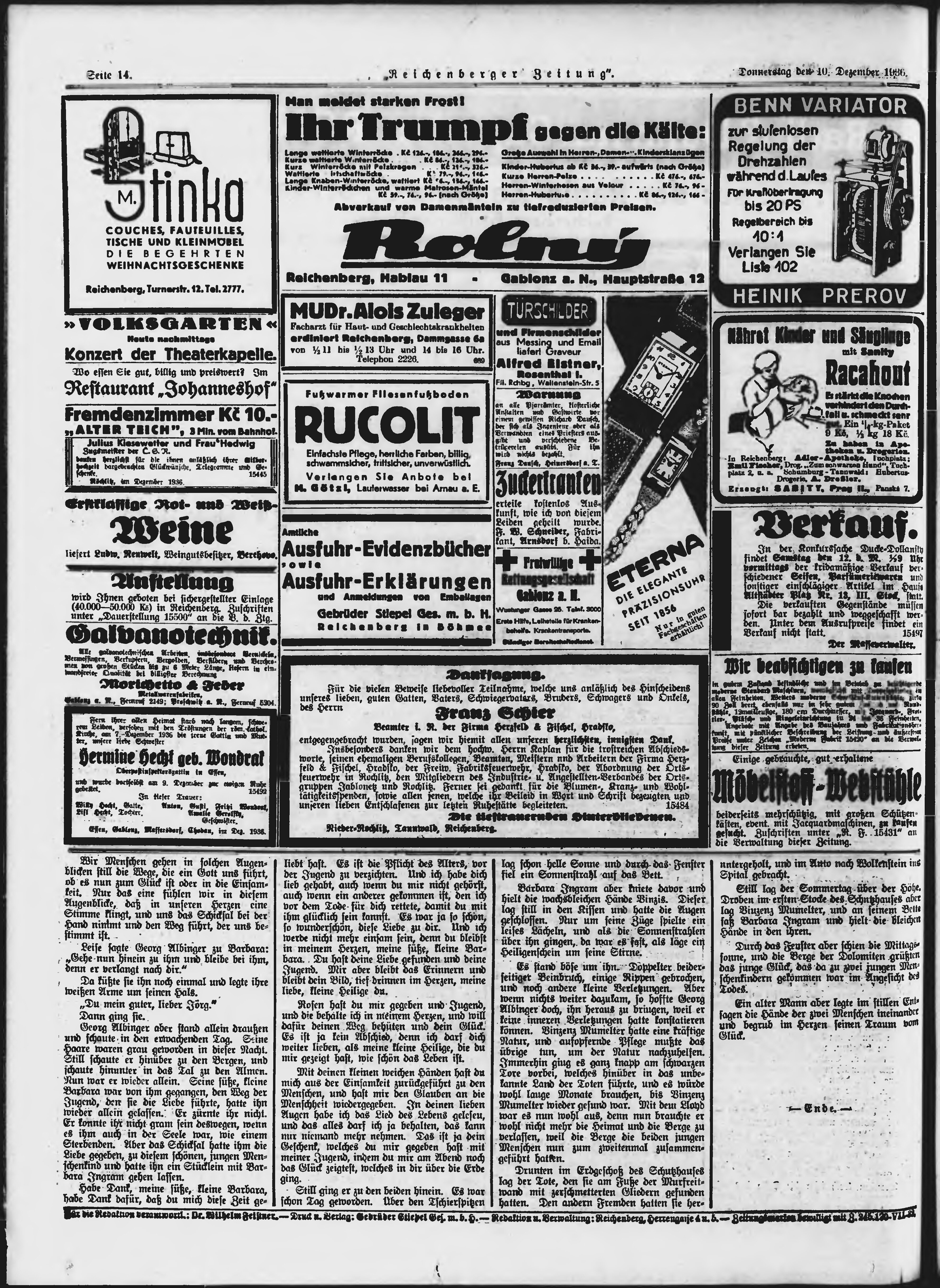 * Datum vydání výtisku: 10.12.1936 Číslo výtisku: 288 Poznámky k výtisku: ranní vydání;