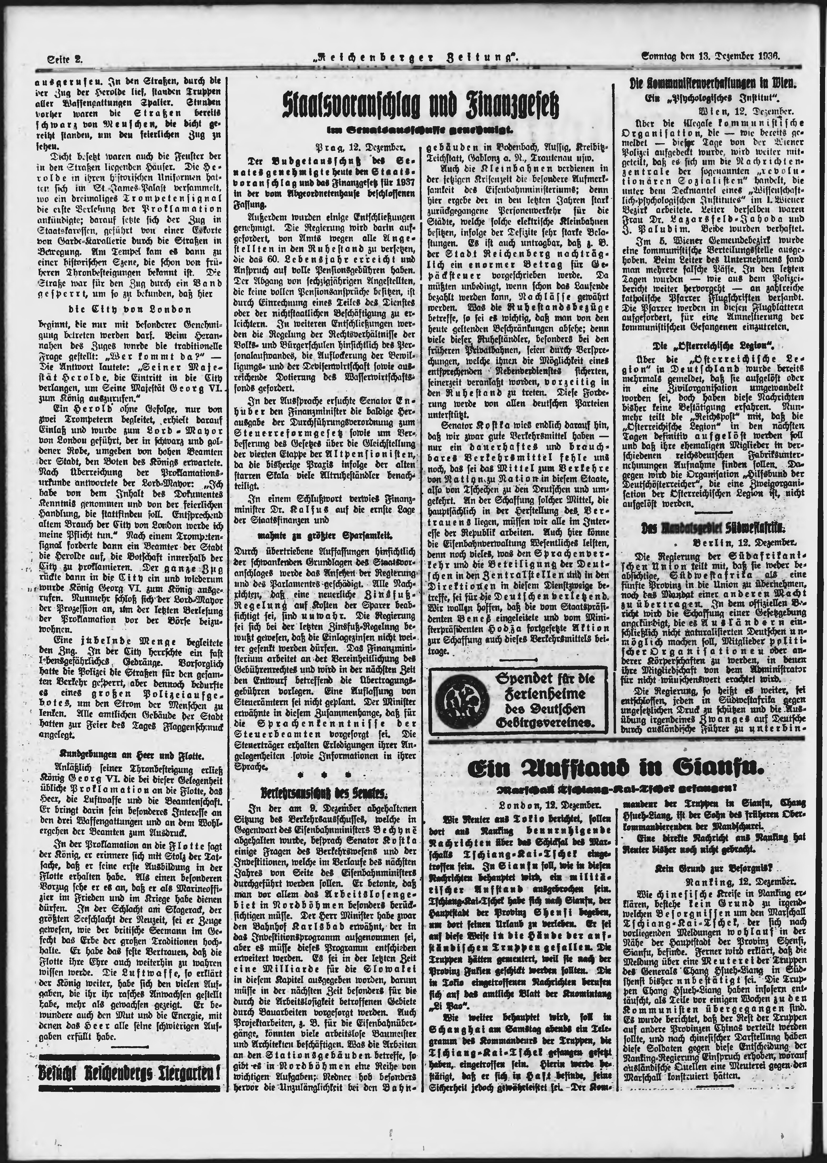 * Datum vydání výtisku: 13.12.1936 Číslo výtisku: 291 Poznámky k výtisku: ranní vydání;