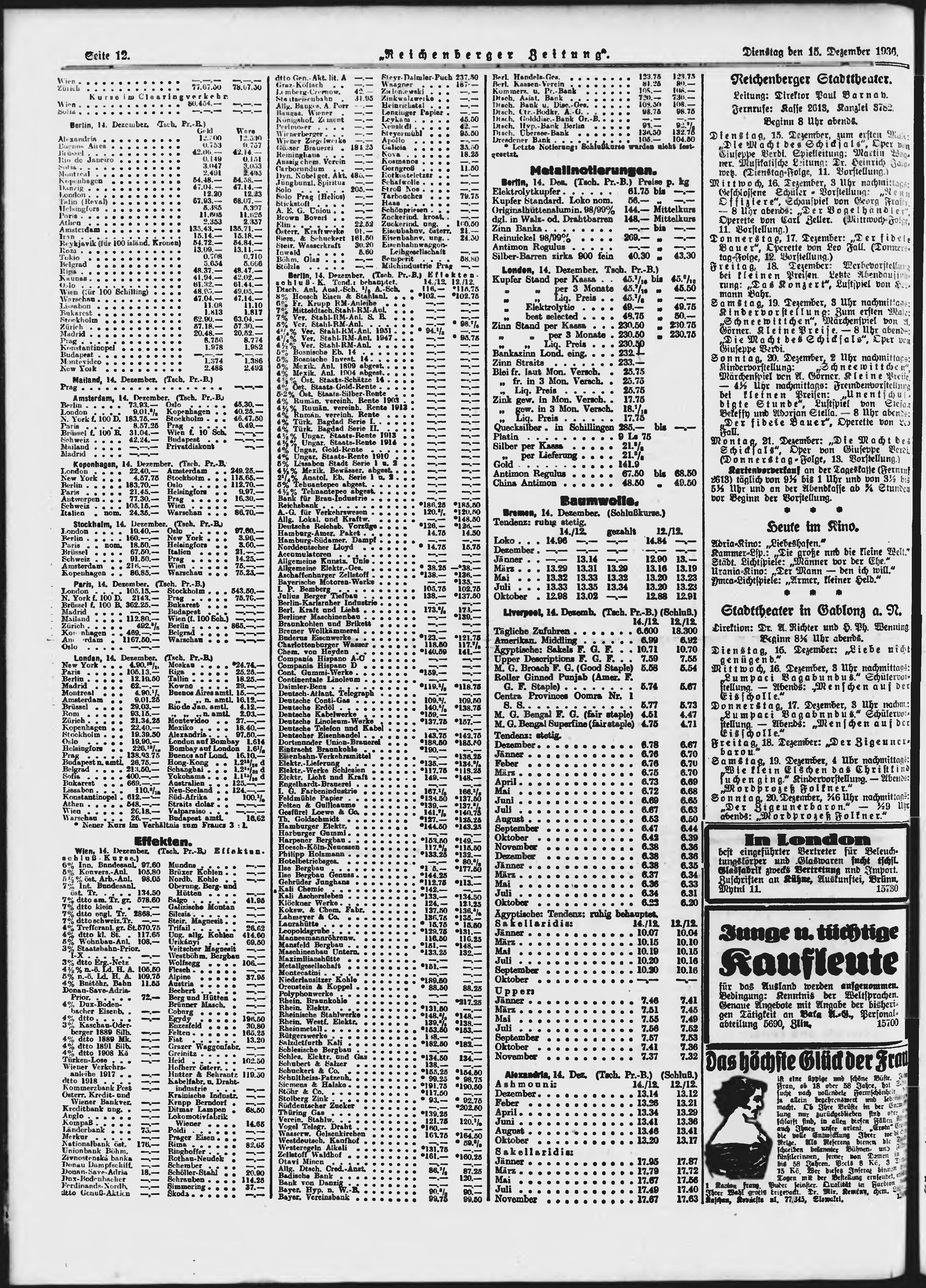 * Datum vydání výtisku: 15.12.1936 Číslo výtisku: 292 Poznámky k výtisku: ranní vydání;