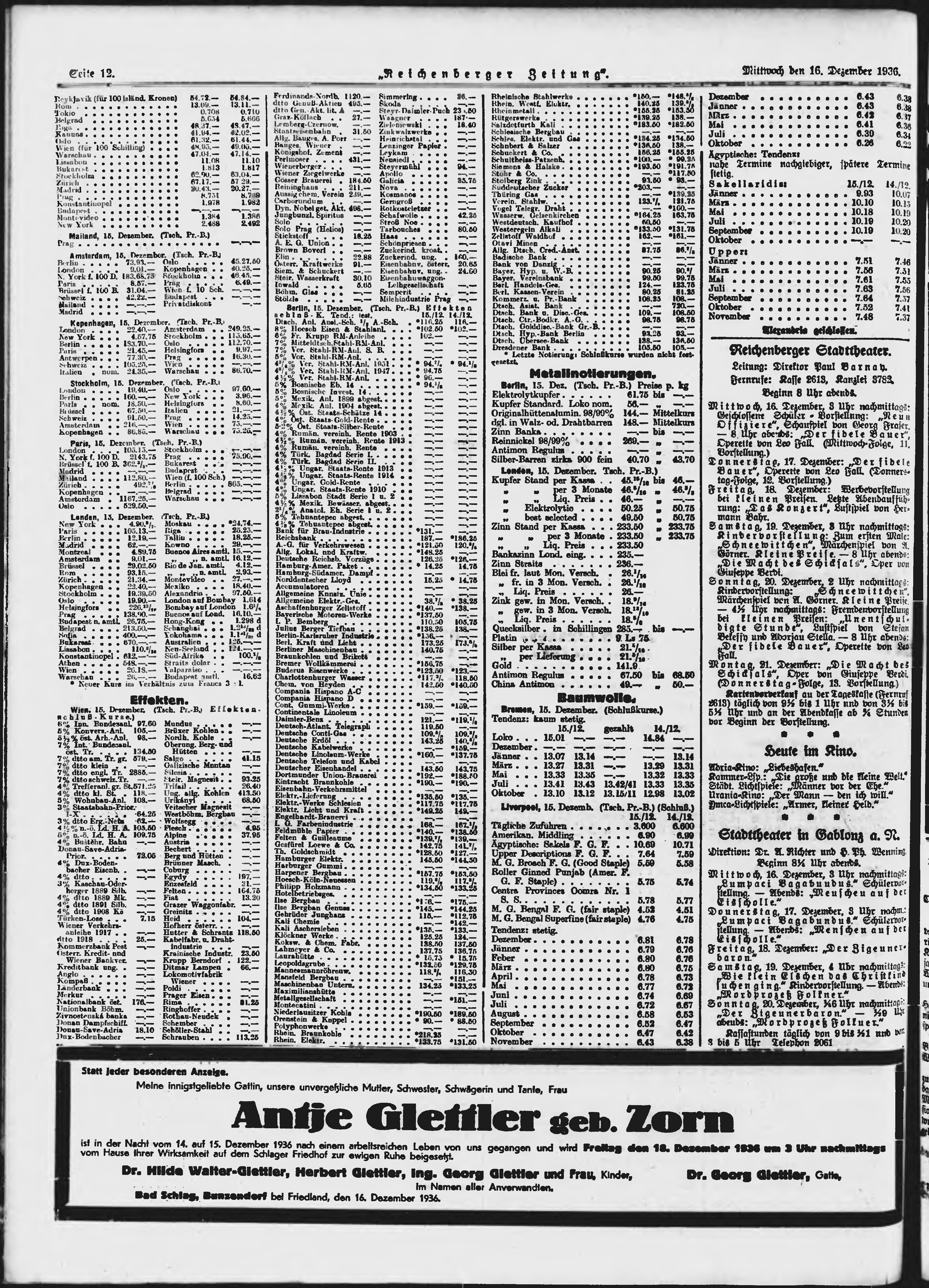 * Datum vydání výtisku: 16.12.1936 Číslo výtisku: 293 Poznámky k výtisku: ranní vydání;