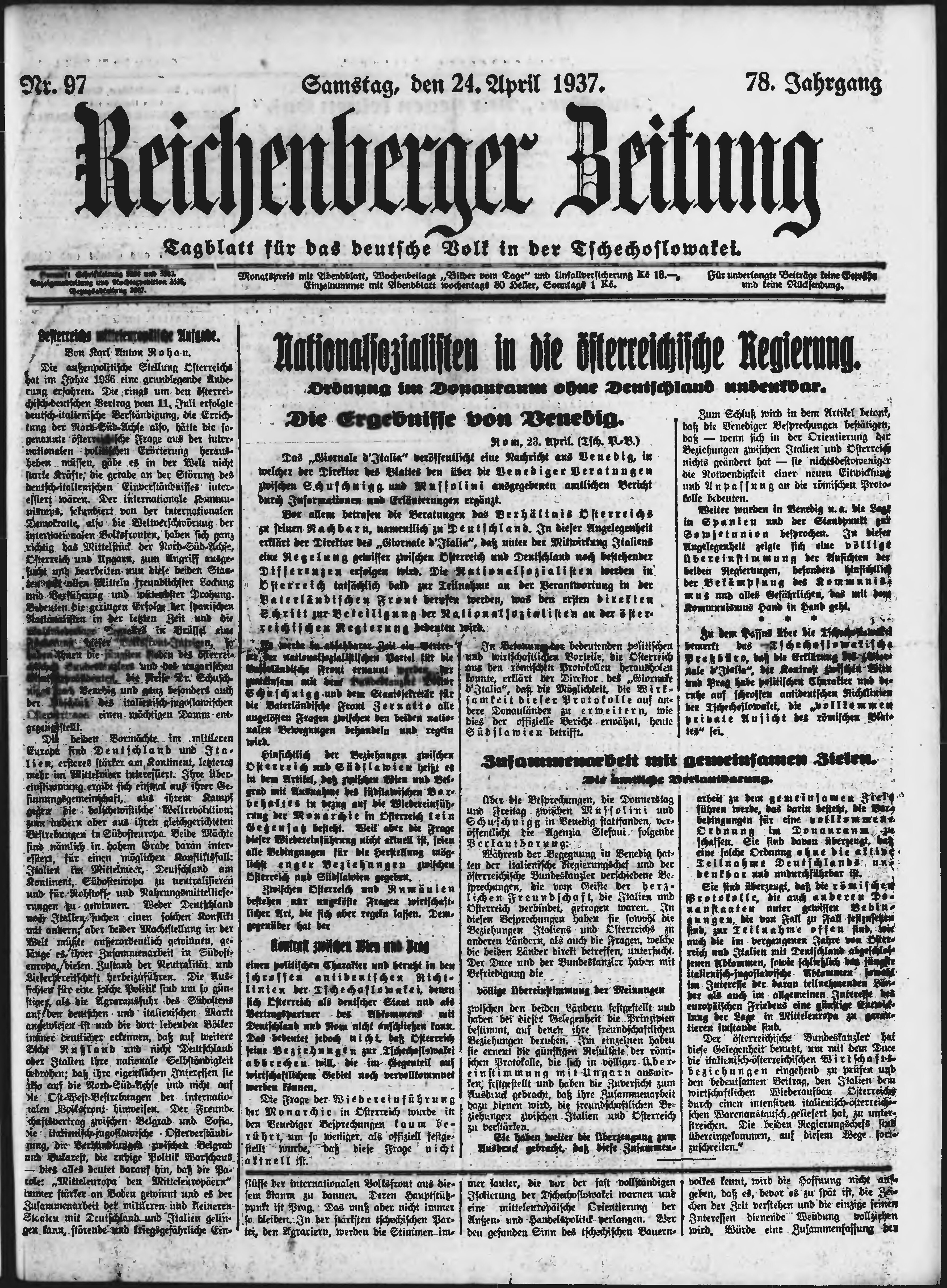 * Datum vydání výtisku: 24.4.1937 Číslo výtisku: 97 Poznámky k výtisku: ranní vydání;