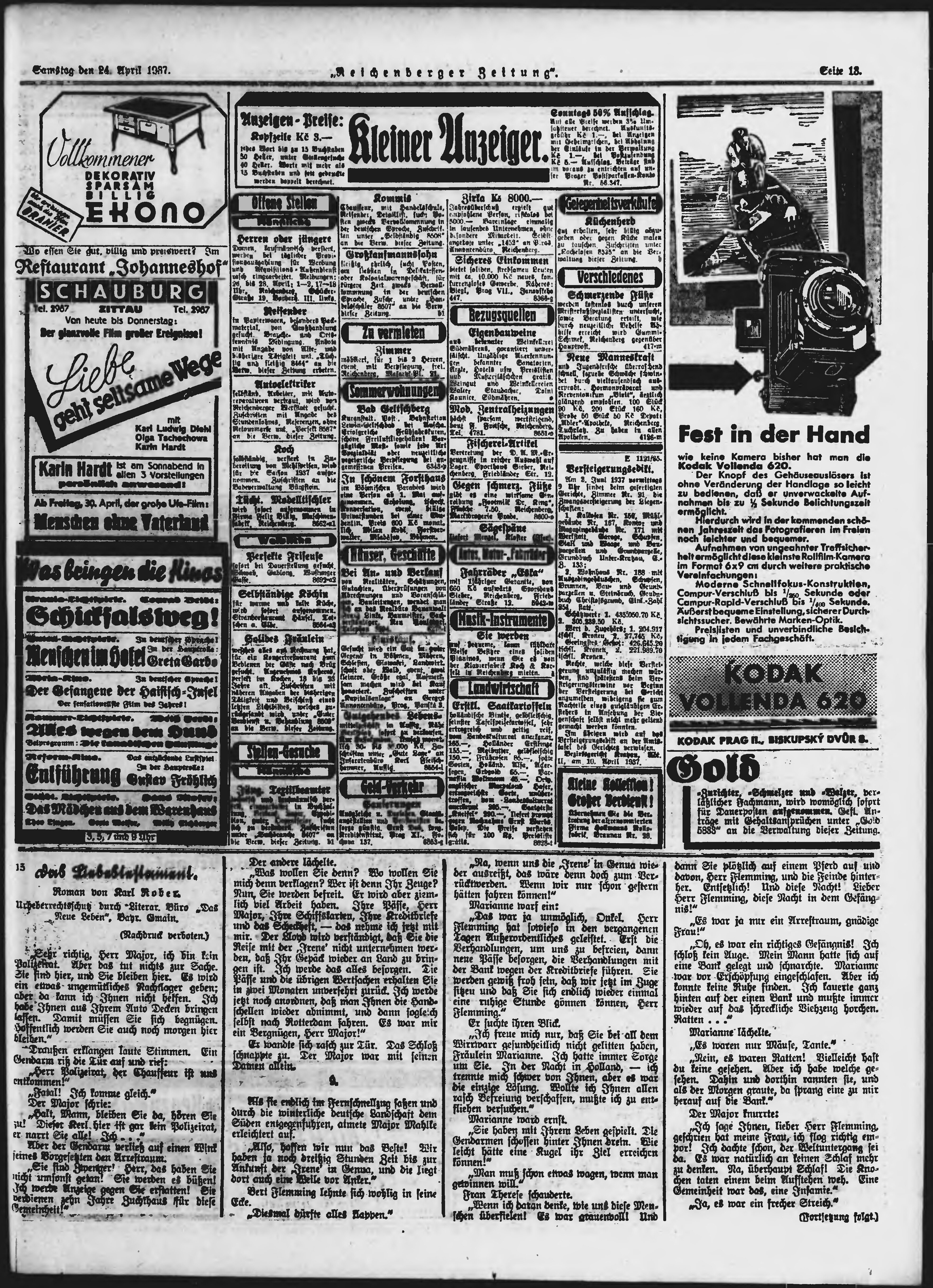 * Datum vydání výtisku: 24.4.1937 Číslo výtisku: 97 Poznámky k výtisku: ranní vydání;