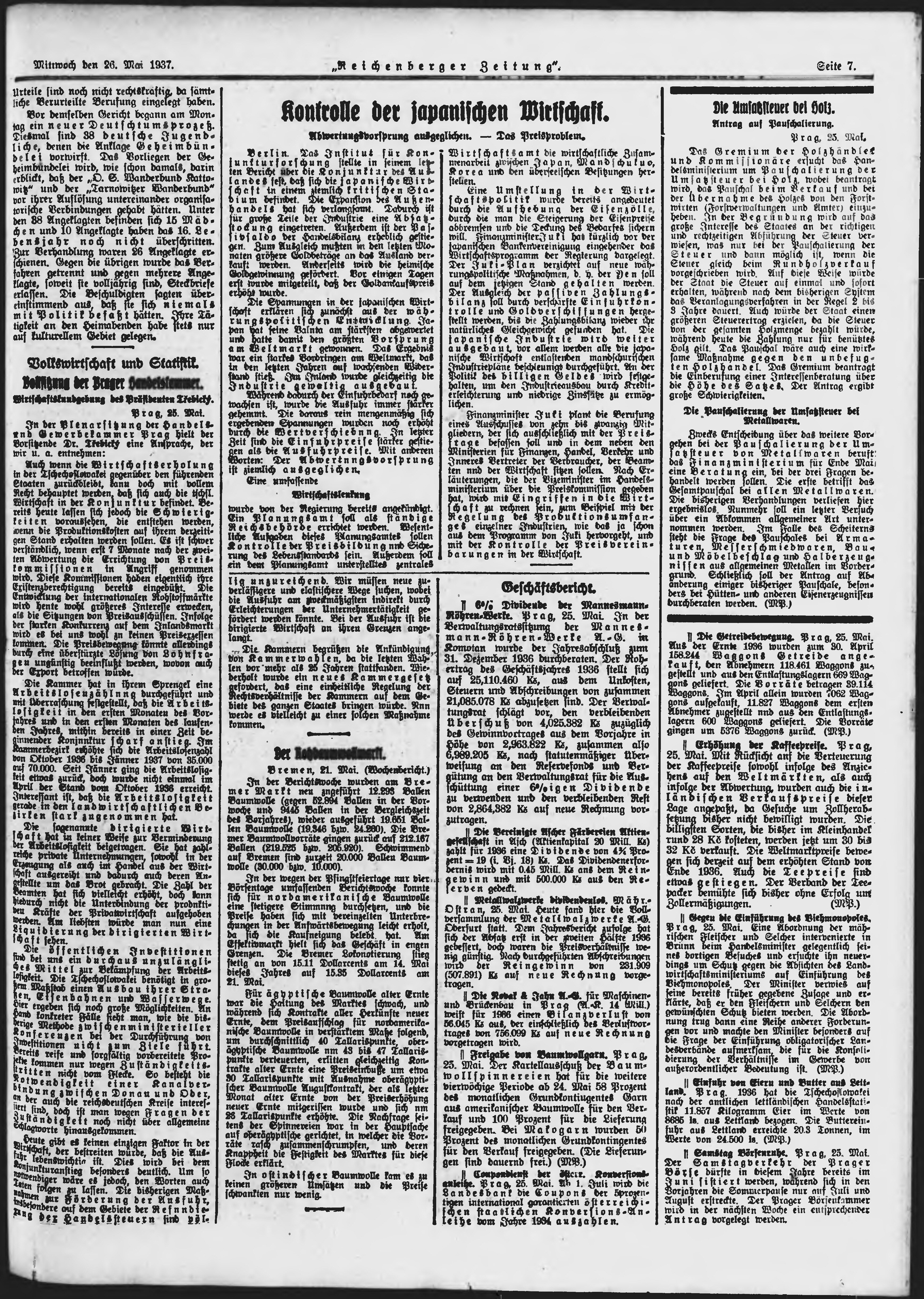 * Datum vydání výtisku: 26.5.1937 Číslo výtisku: 122 Poznámky k výtisku: ranní vydání;