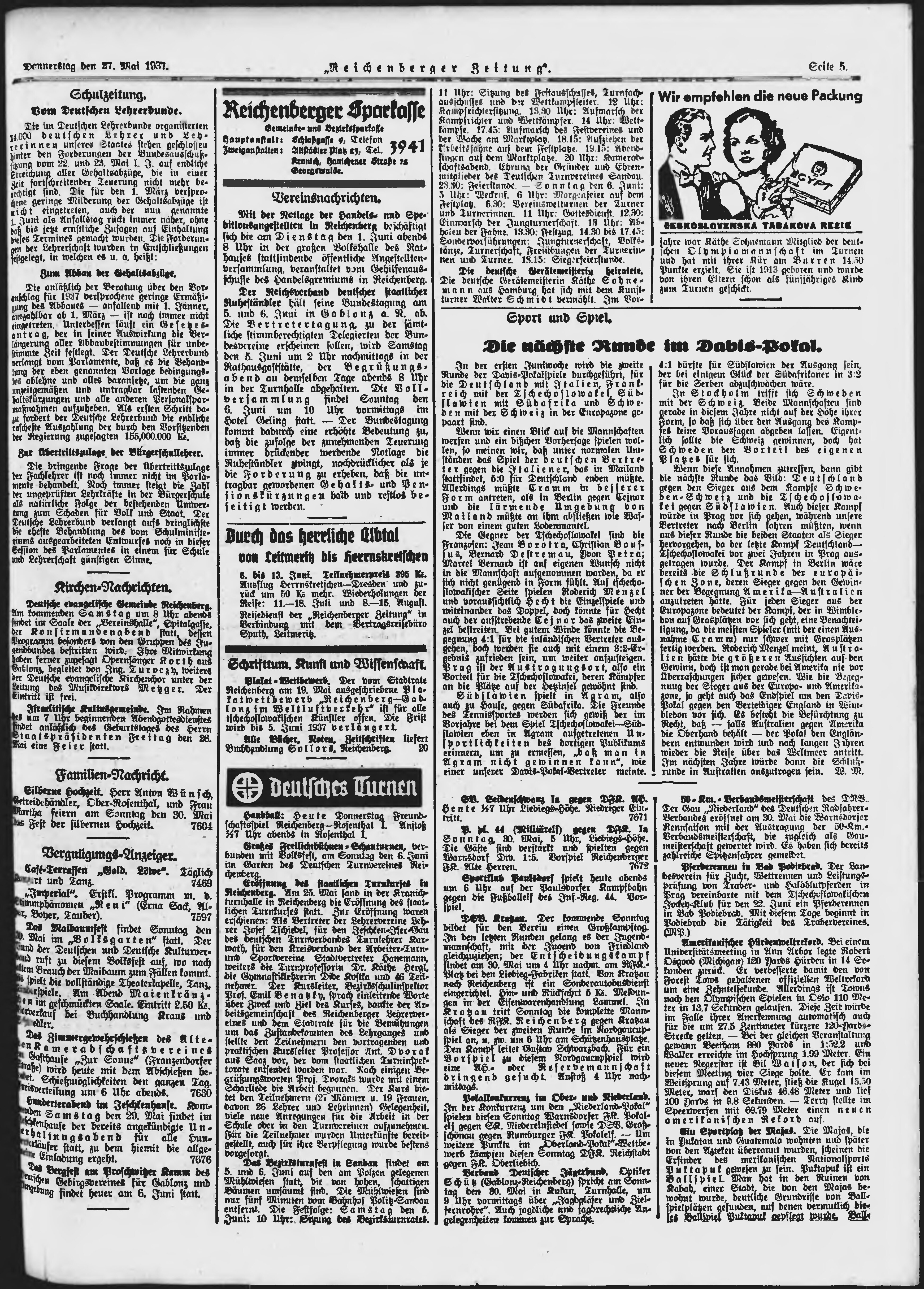 * Datum vydání výtisku: 27.5.1937 Číslo výtisku: 123 Poznámky k výtisku: ranní vydání;