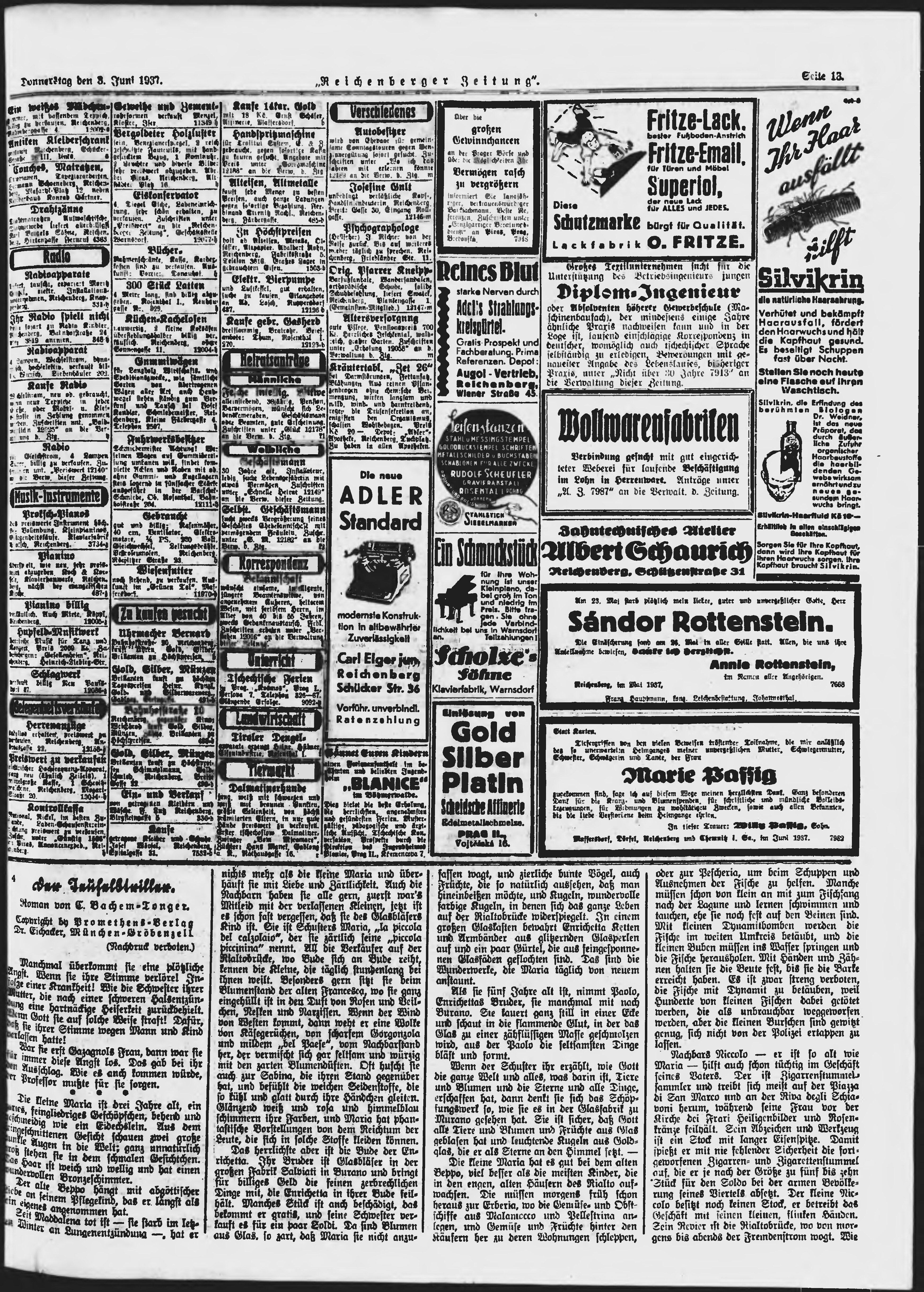 * Datum vydání výtisku: 3.6.1937 Číslo výtisku: 129 Poznámky k výtisku: ranní vydání;