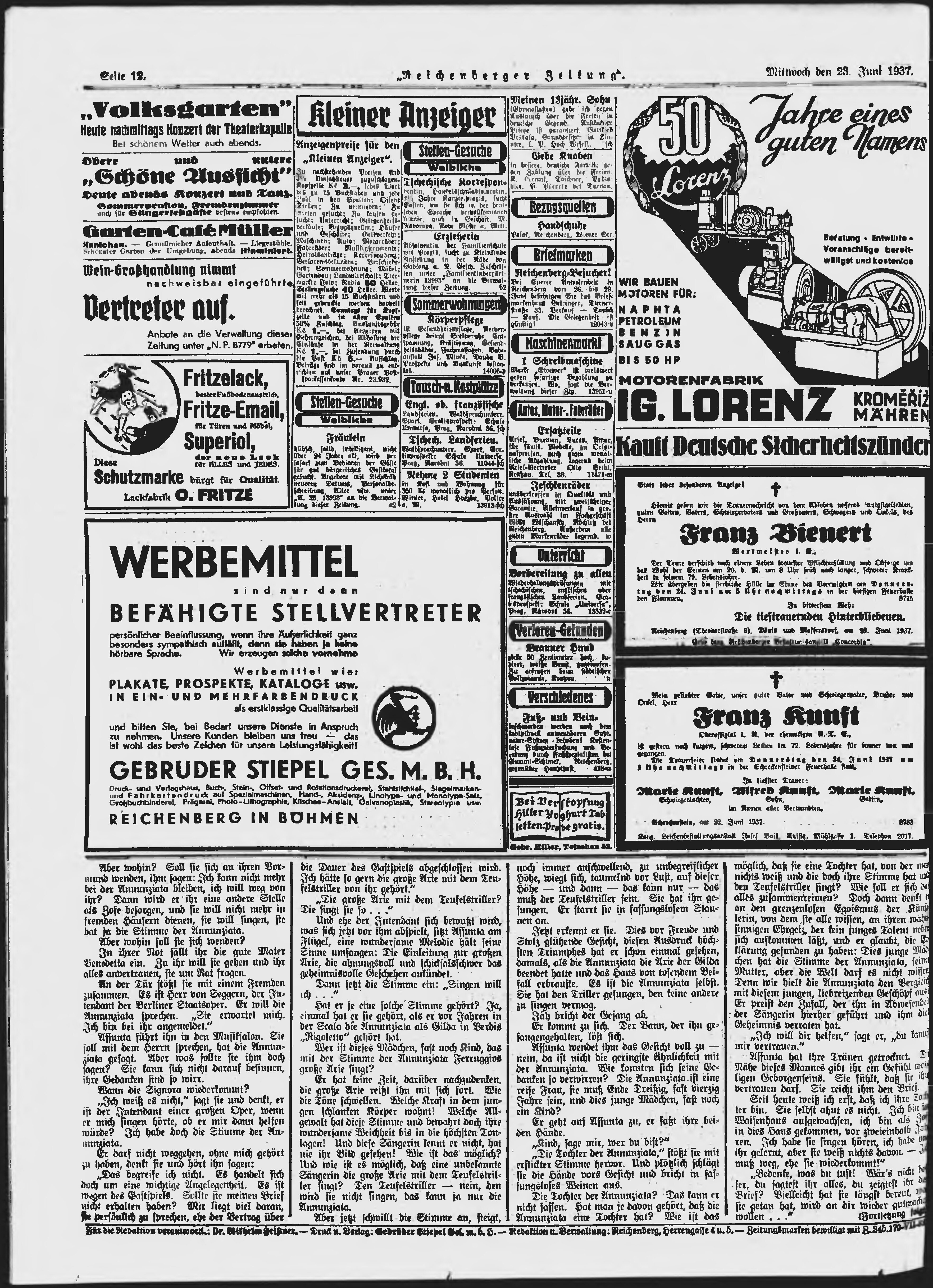 * Datum vydání výtisku: 23.6.1937 Číslo výtisku: 146 Poznámky k výtisku: ranní vydání;