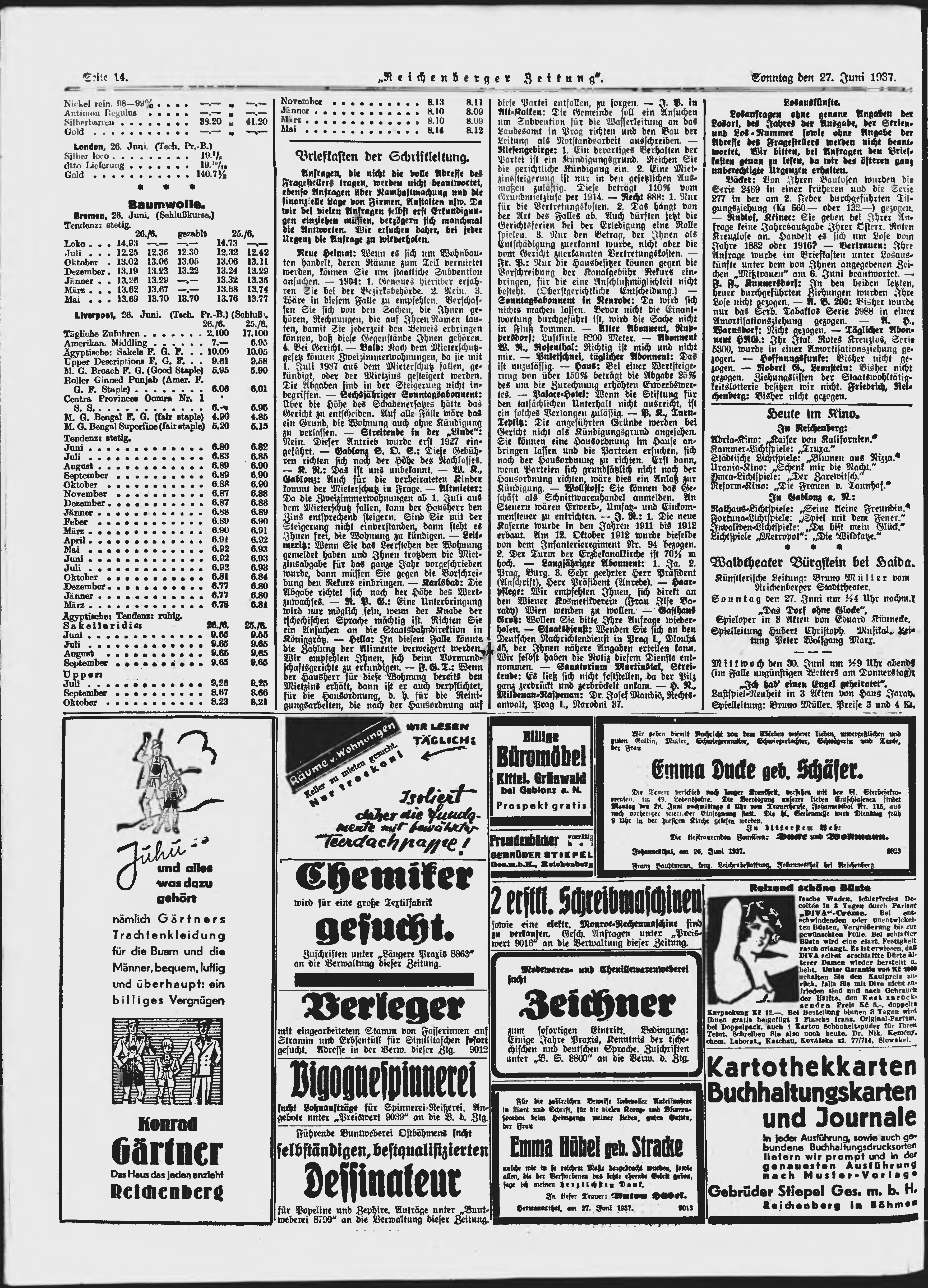 * Datum vydání výtisku: 27.6.1937 Číslo výtisku: 150 Poznámky k výtisku: ranní vydání;