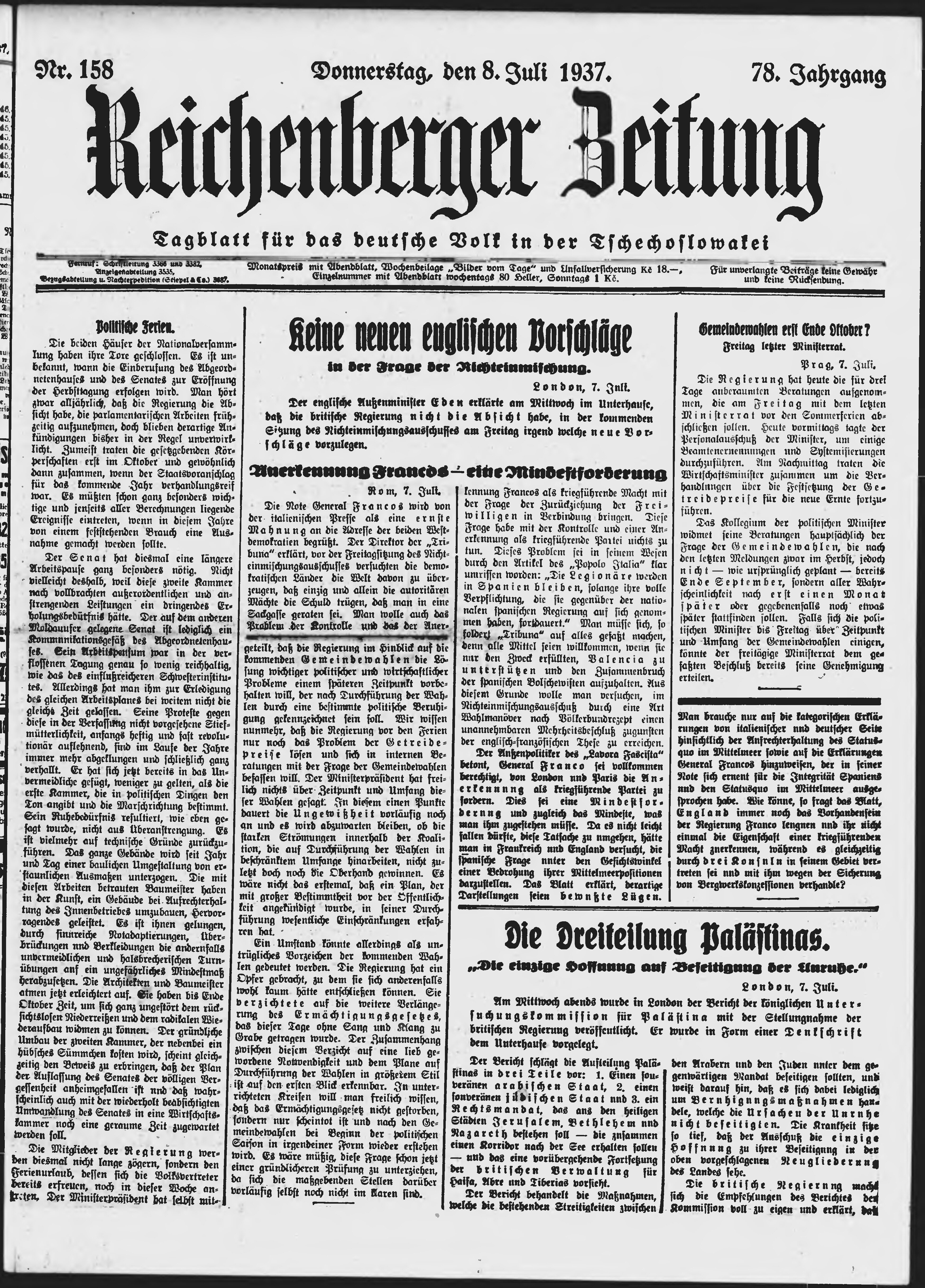 * Datum vydání výtisku: 8.7.1937 Číslo výtisku: 158 Poznámky k výtisku: ranní vydání;