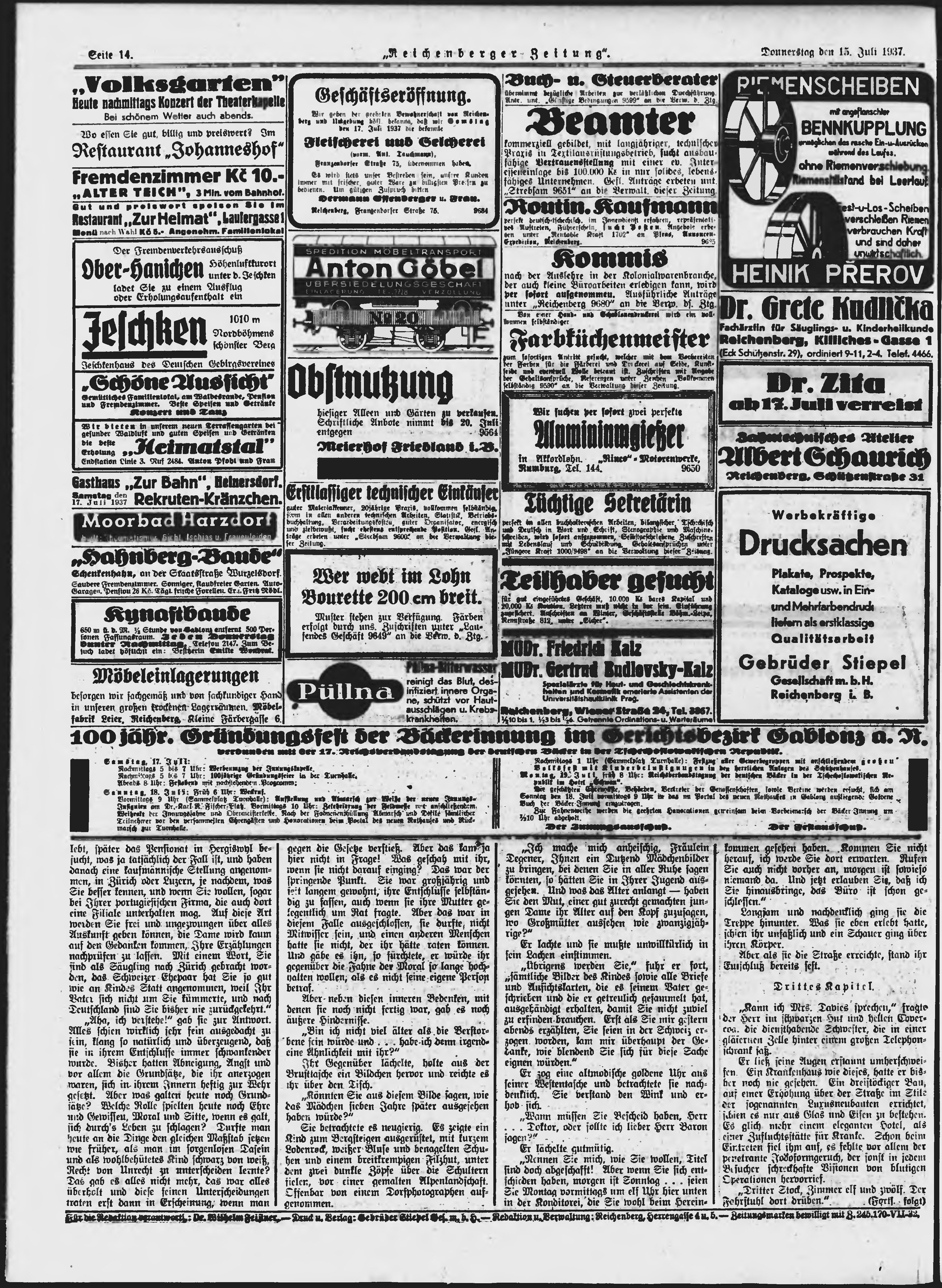 * Datum vydání výtisku: 15.7.1937 Číslo výtisku: 164 Poznámky k výtisku: ranní vydání;