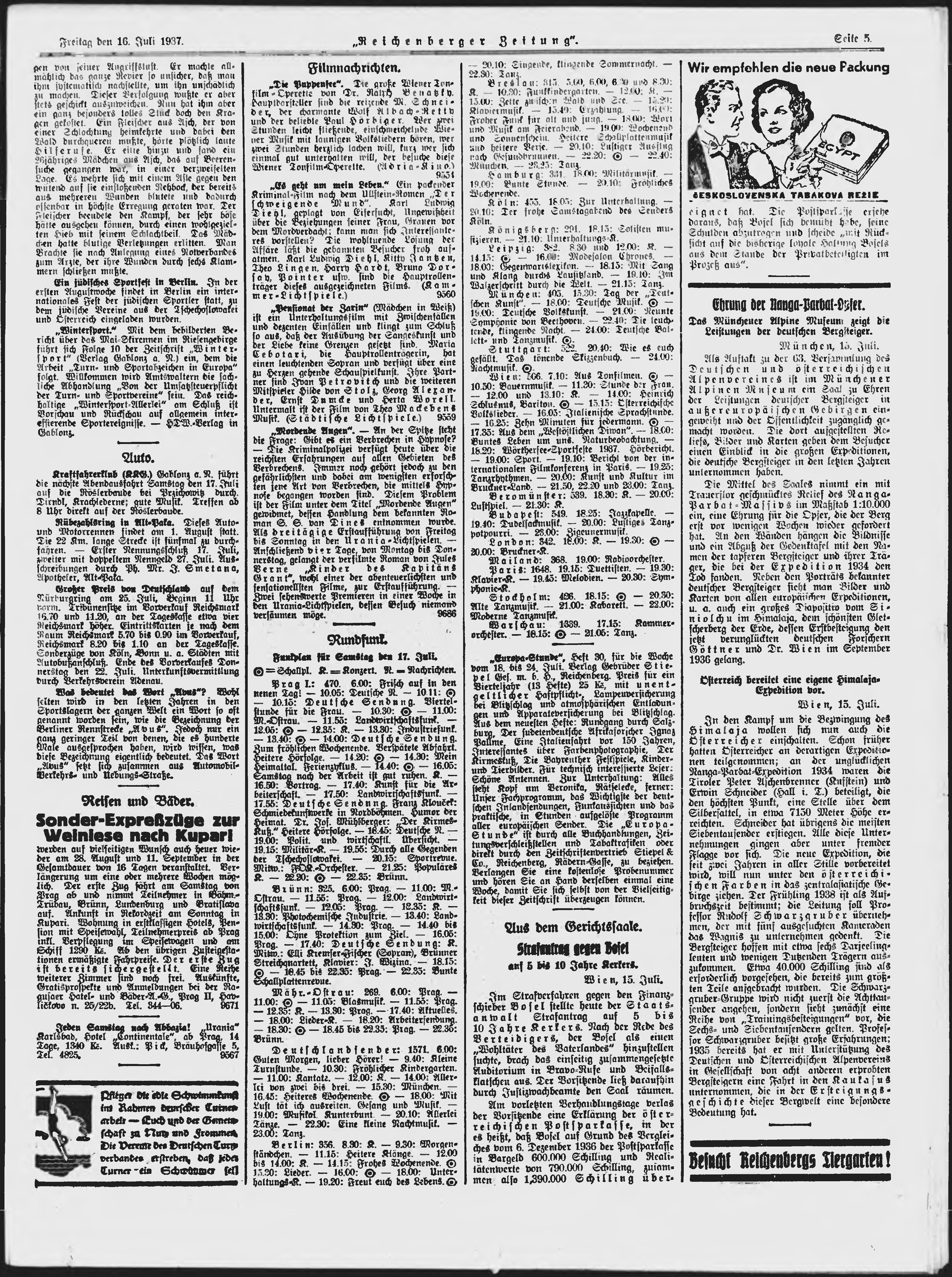 * Datum vydání výtisku: 16.7.1937 Číslo výtisku: 165 Poznámky k výtisku: ranní vydání;